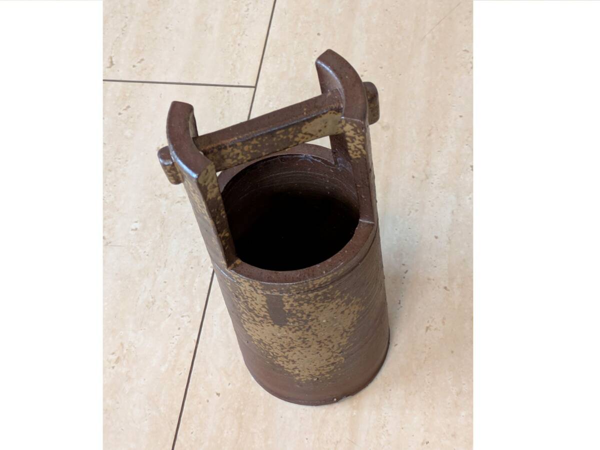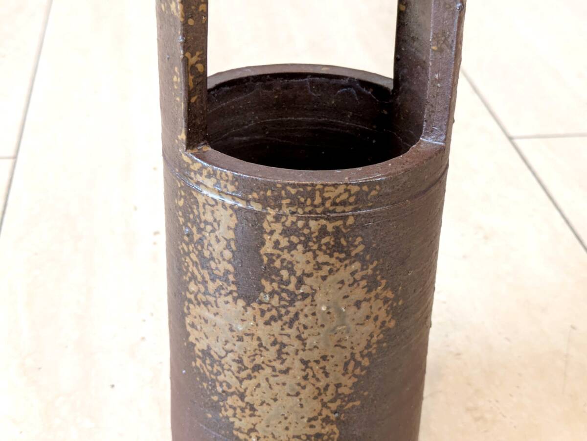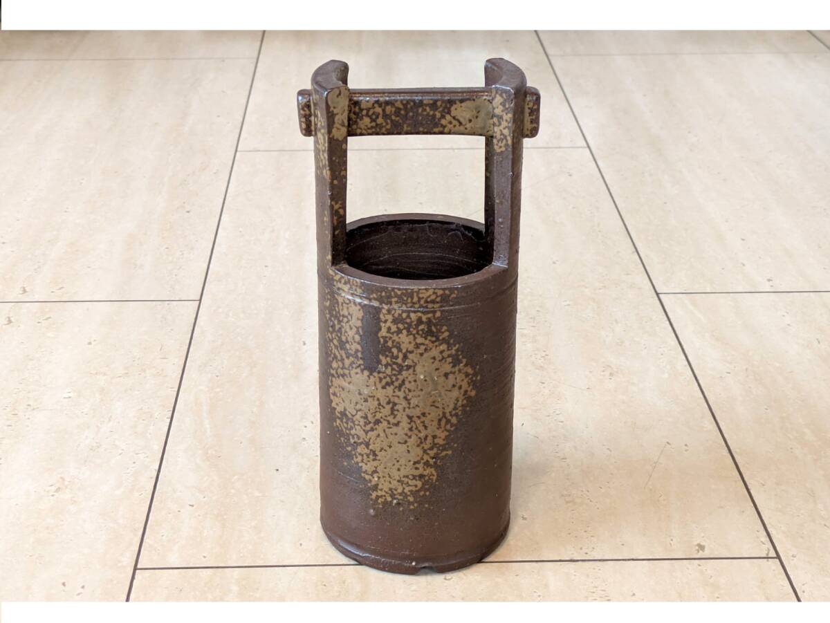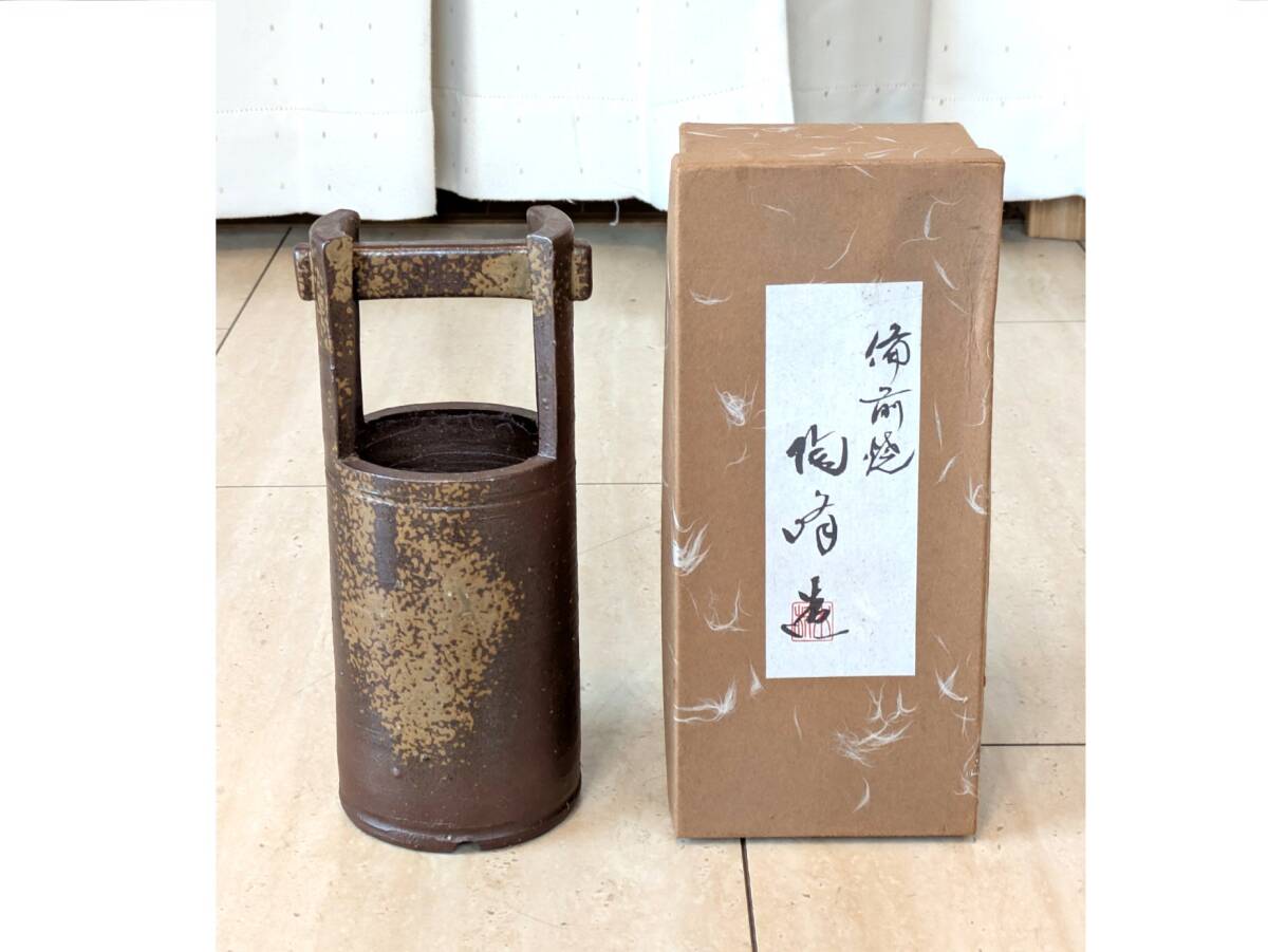Й★備前焼★胡麻焼★手桶花瓶★直径9×H22.5㎝★陶器★インテリア★置物★陶芸品★工芸品★花器★花生★箱入り★未使用品★
