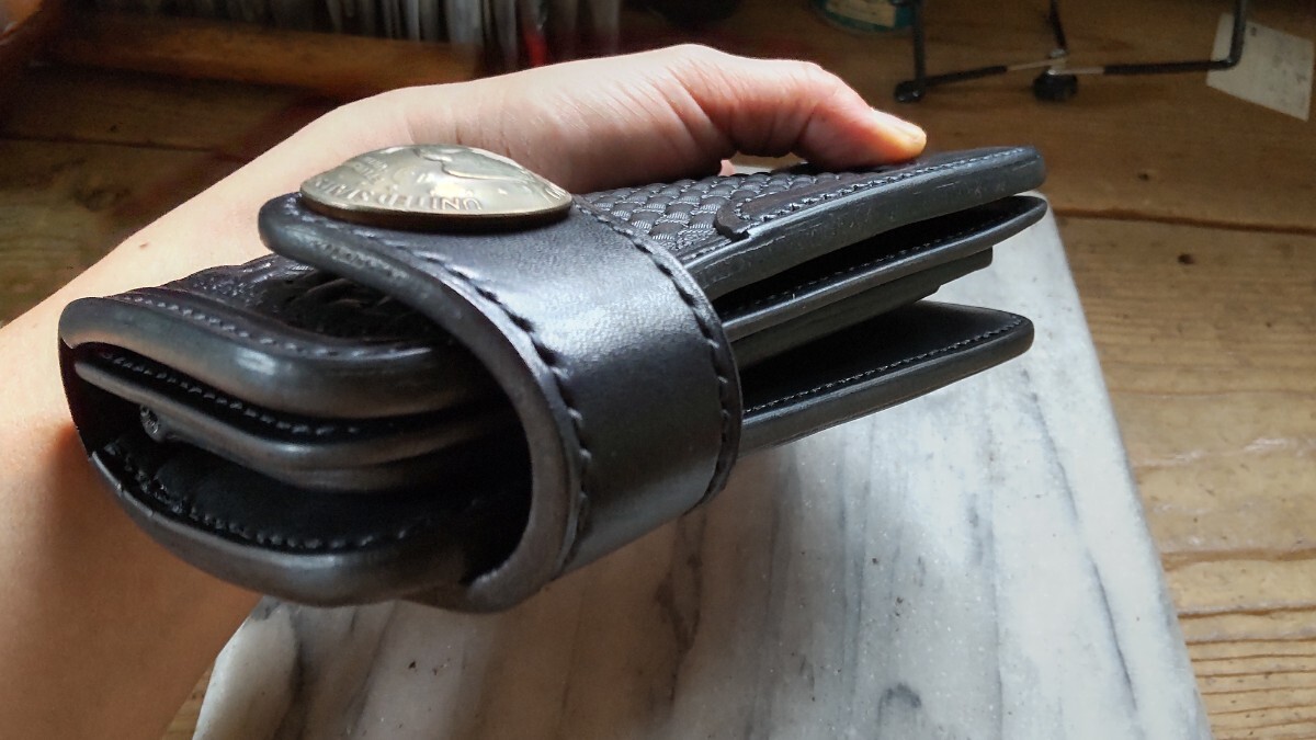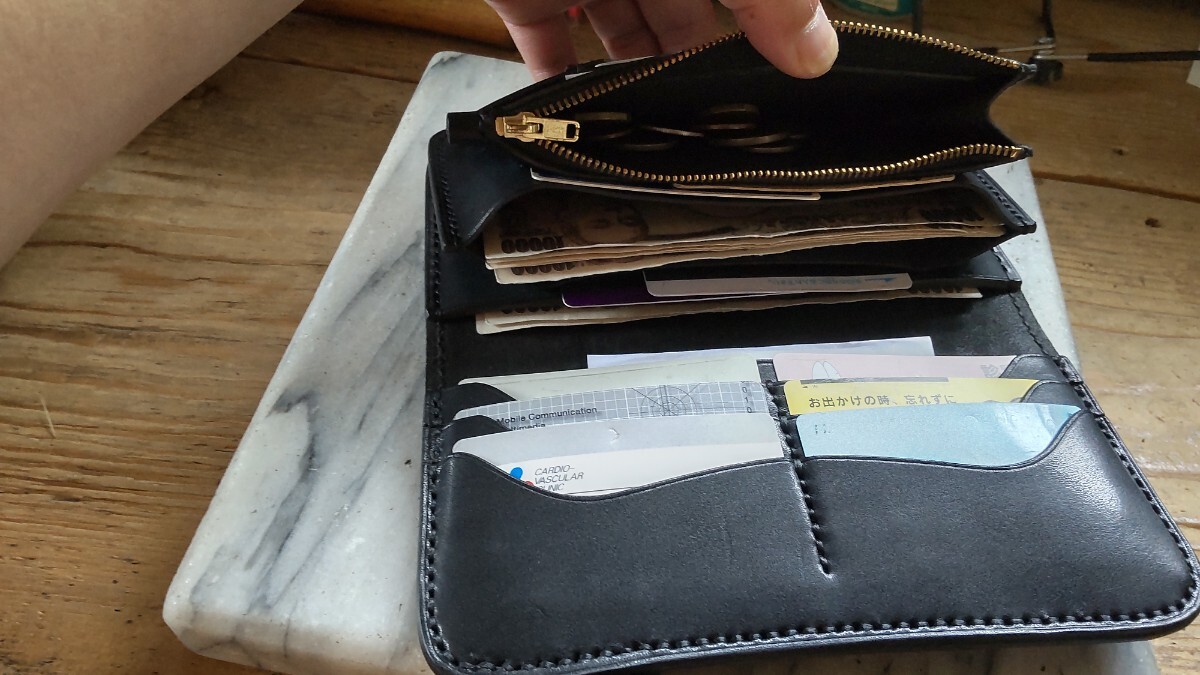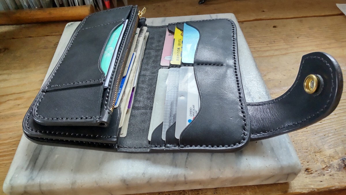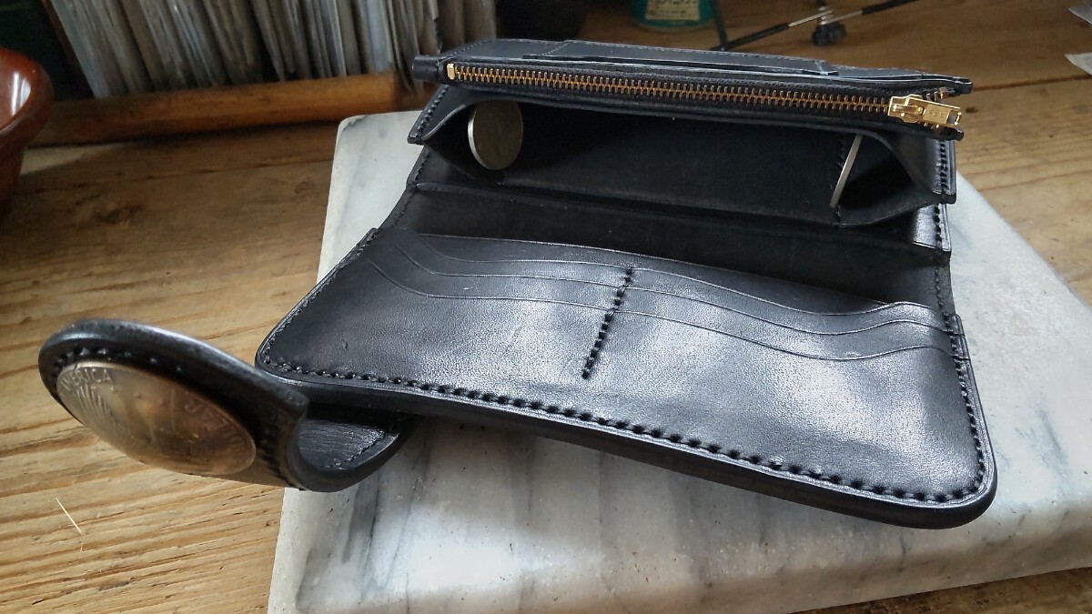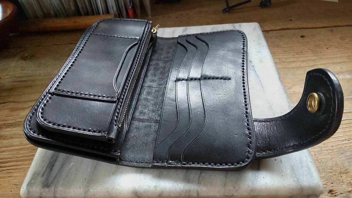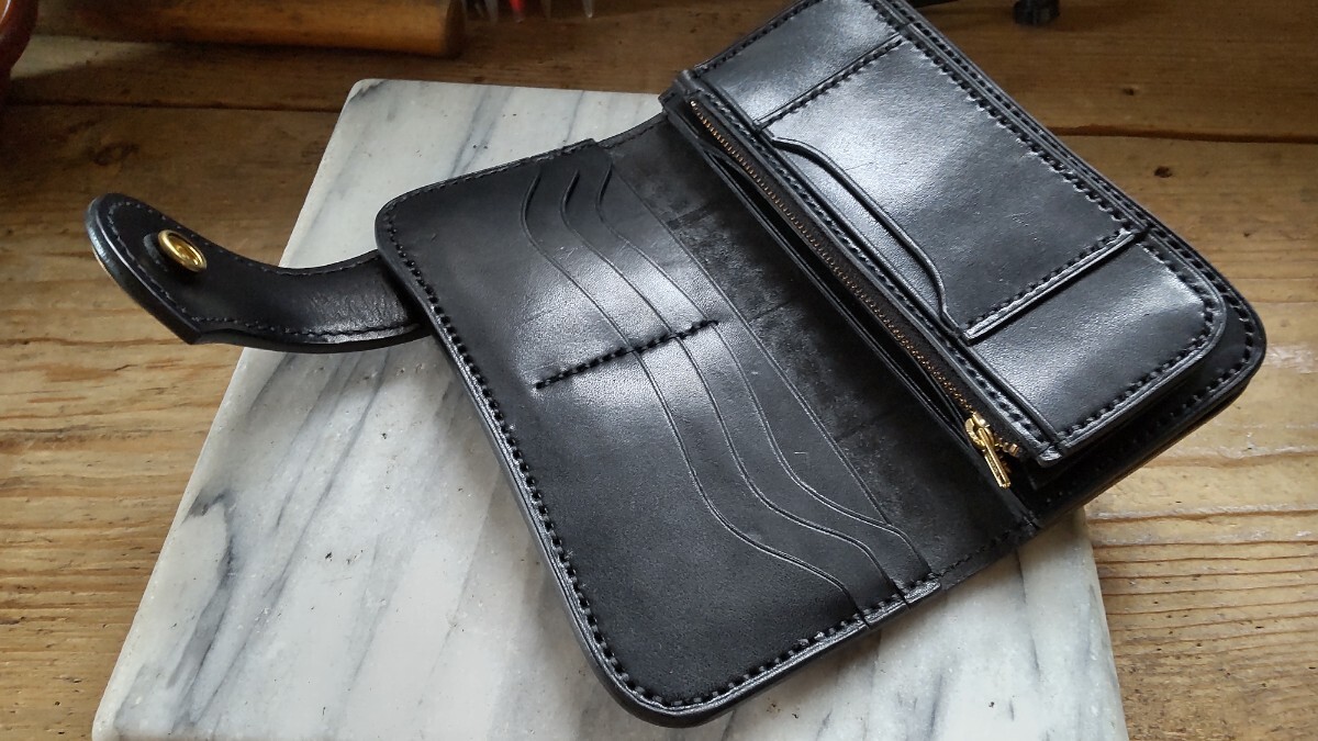 良質な北米産ステアハイド タンニン鞣しの栃木グレージングサドルレザー ブラックカラー芯通しの革で製作したロングウォレットになります。