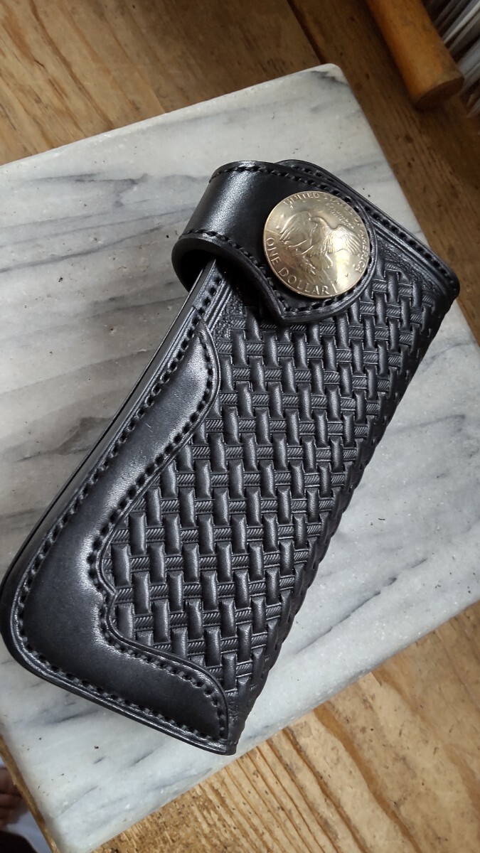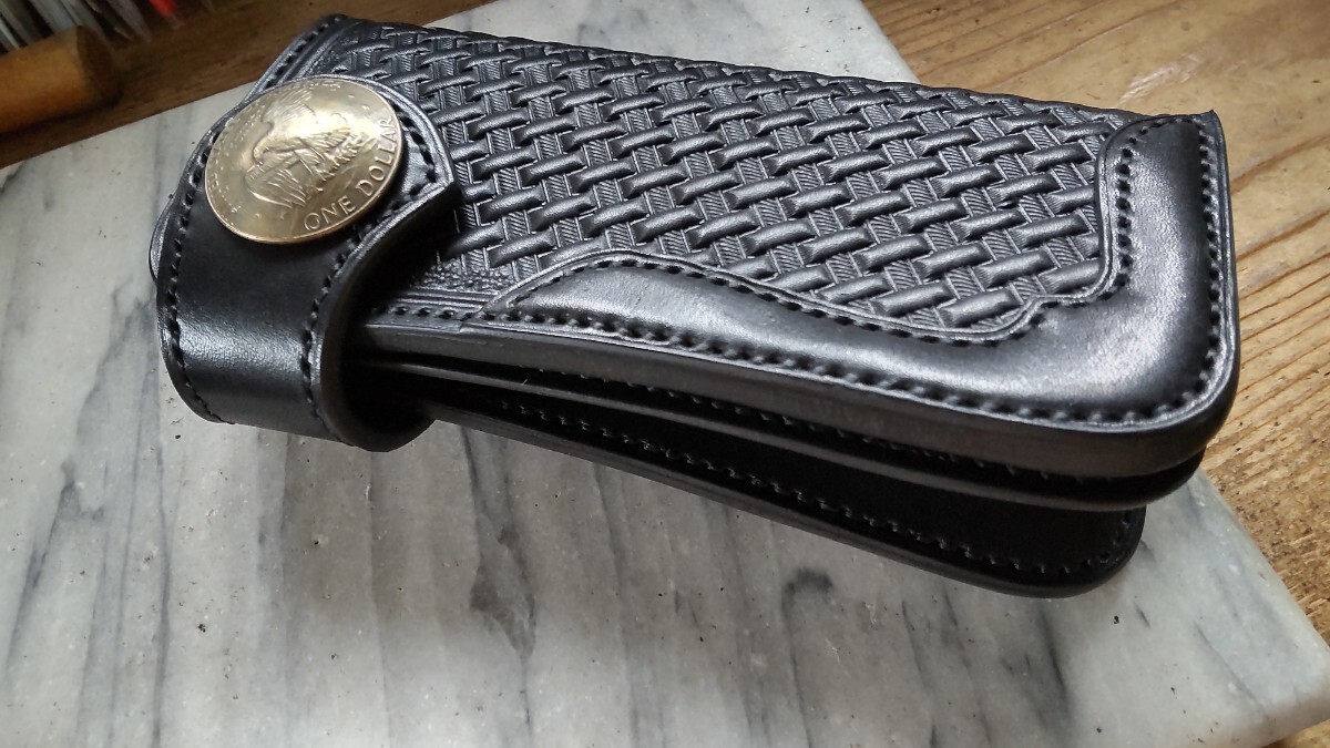 表面には約3.6mm、その他には約1.6mm、1.5mmの革を部位により漉きながら麻糸より強い蝋引きポリエステルの平糸で手縫いで製作しております。