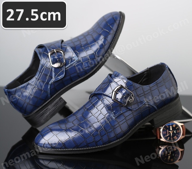ワニ柄 型押 メンズ ビジネスシューズ ブルー サイズ 27.5cm 革靴 靴 カジュアル 屈曲性 通勤 軽量 インポート品【n036】