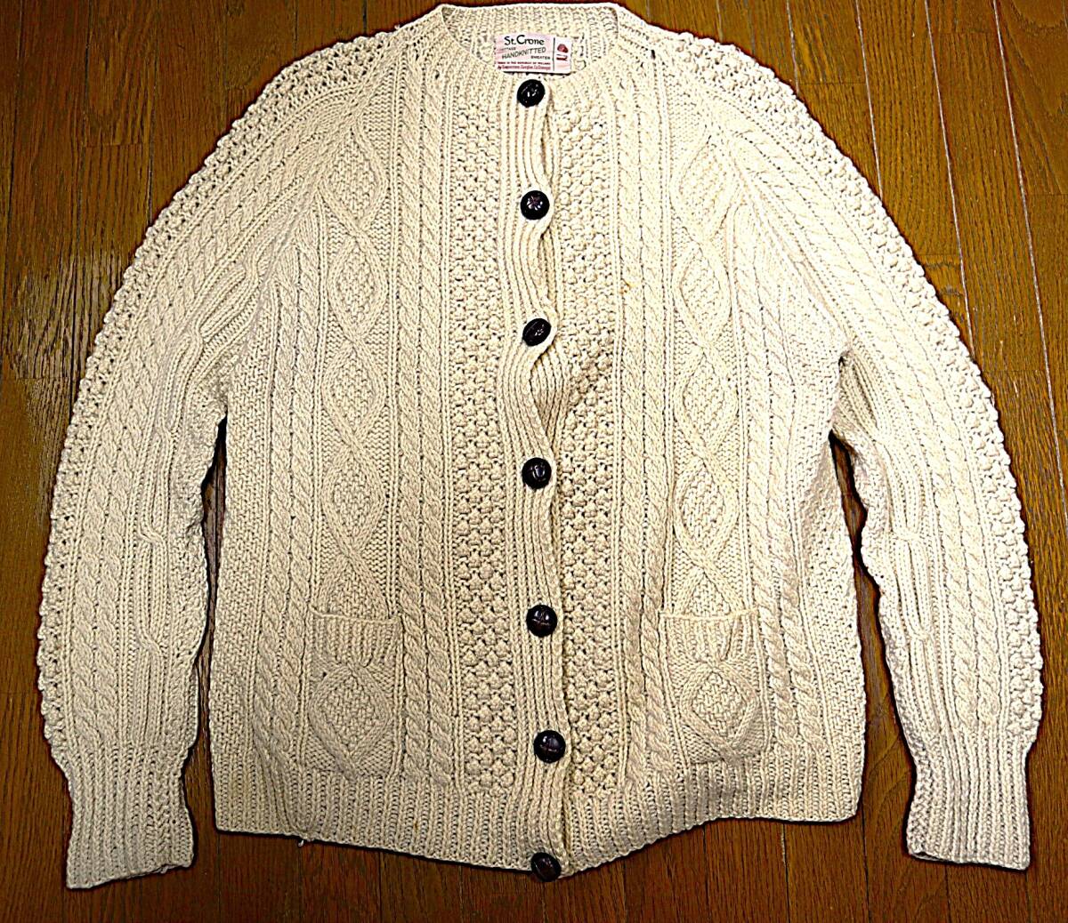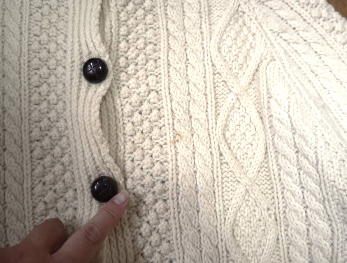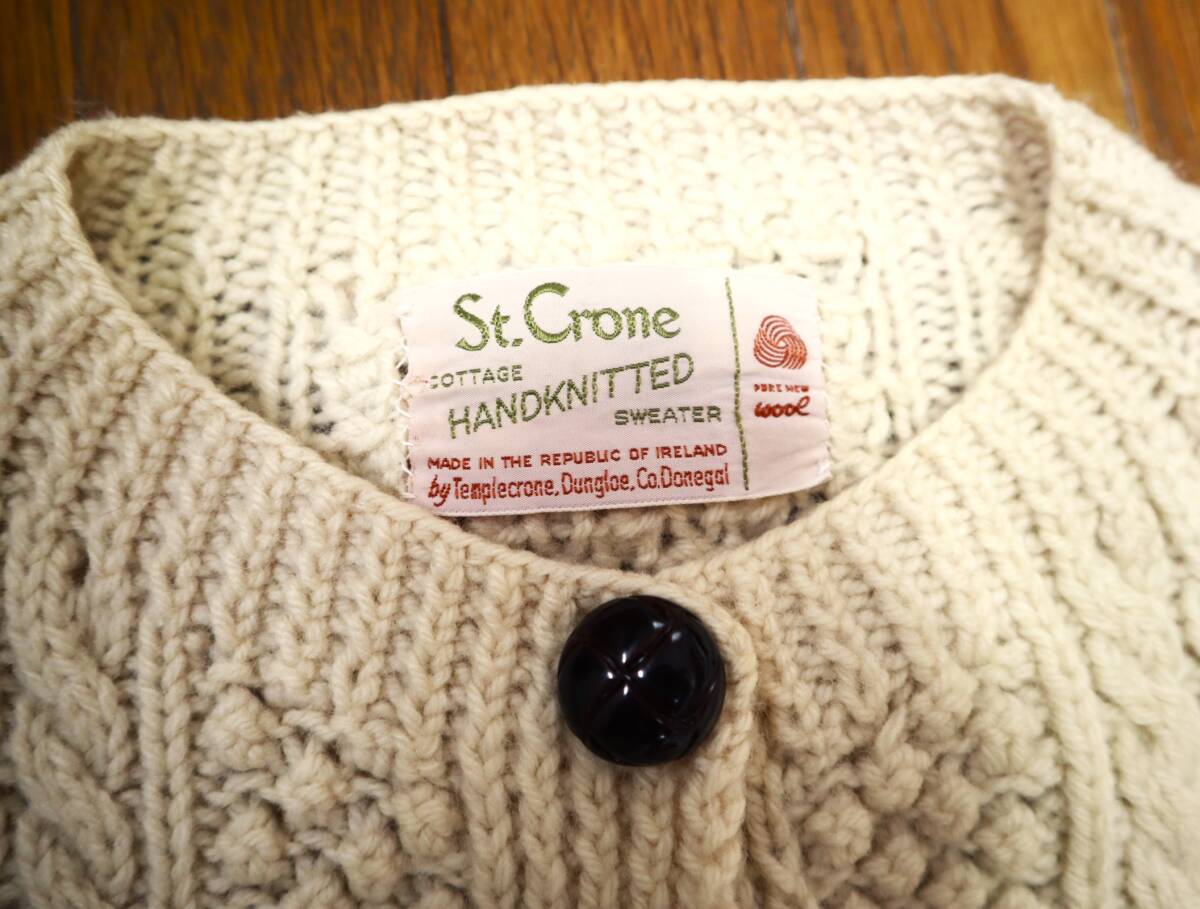 英国 アイルランド製 St Crone クルミボタン ビンテージ アランカーディガン