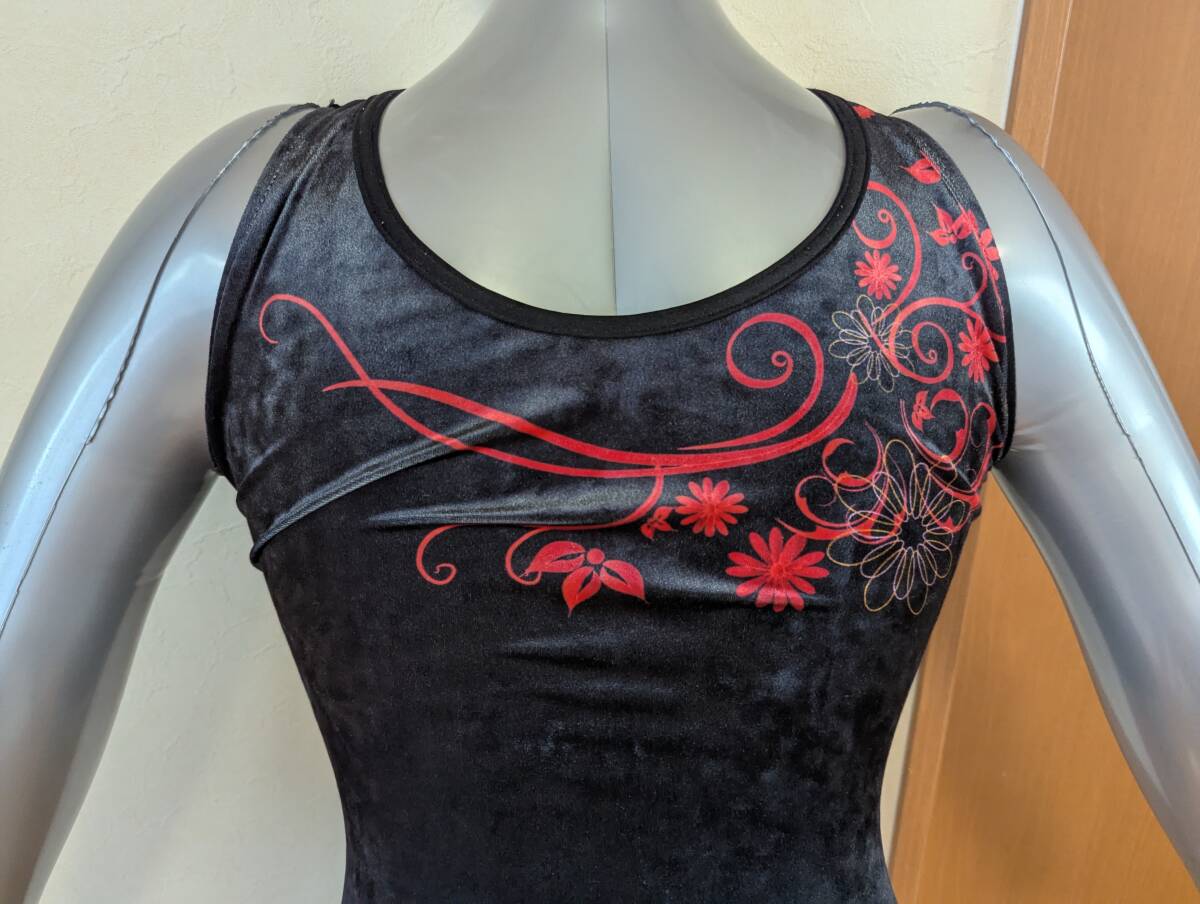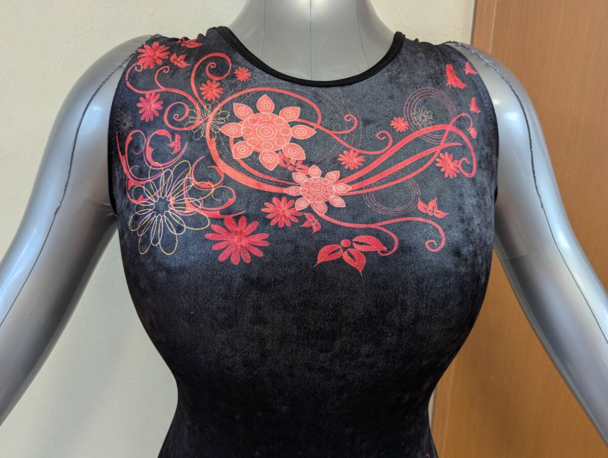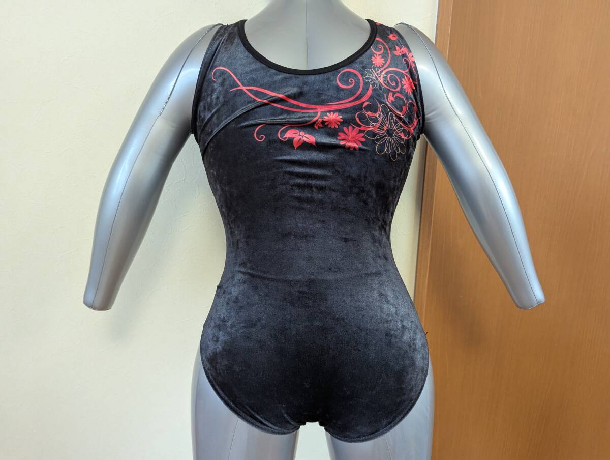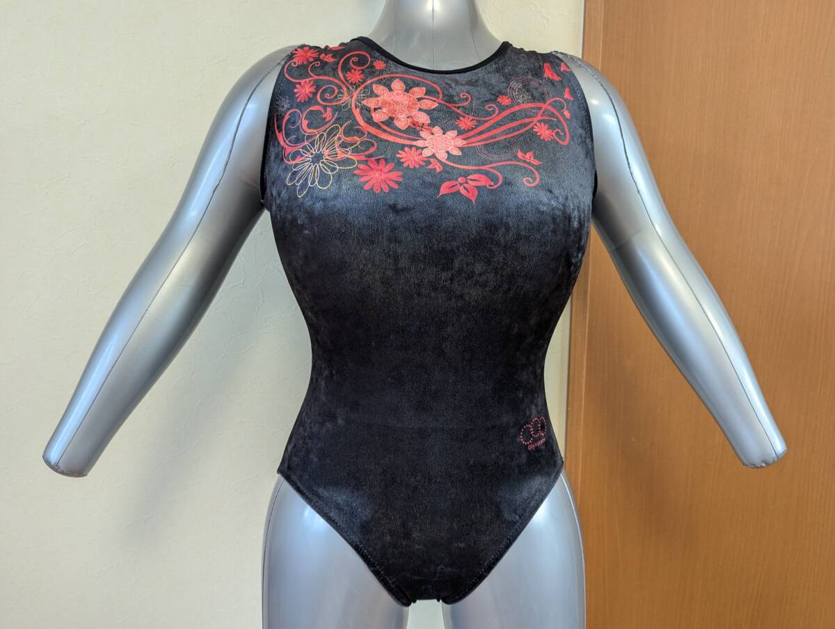 オリンストーン 女子器械体操 新体操 ダンス レオタード ベロア生地 黒/花柄 サイズ2