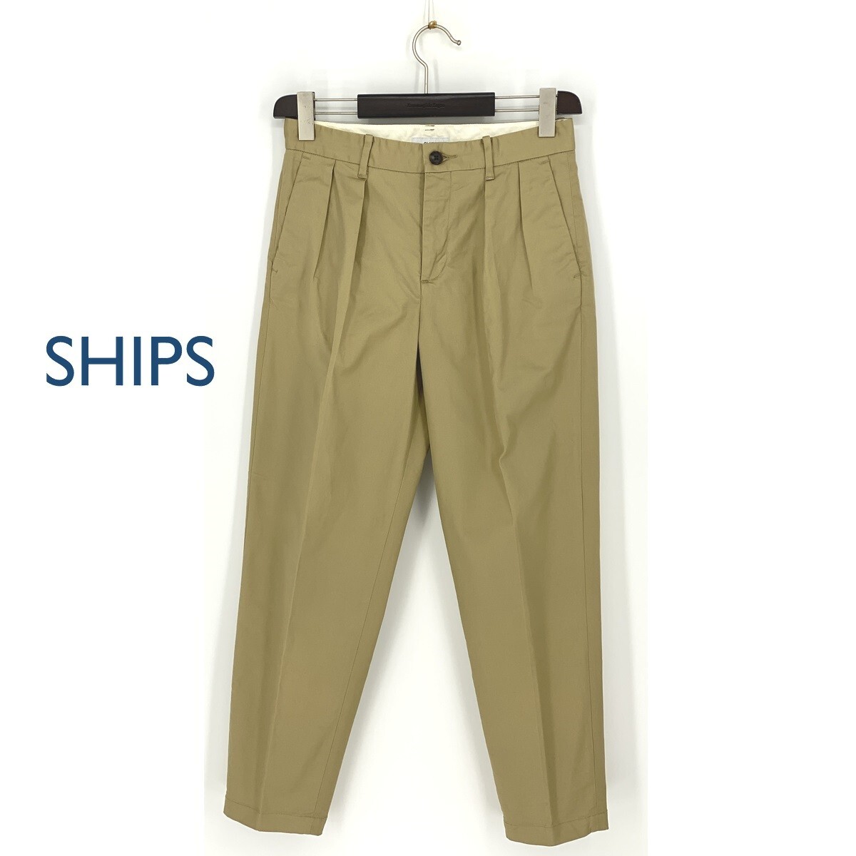B0458/極美品 SHIPS シップス コットン 無地 ストレッチ タック テーパード スラックス パンツ トラウザーズ S ベージュ カーキ メンズ