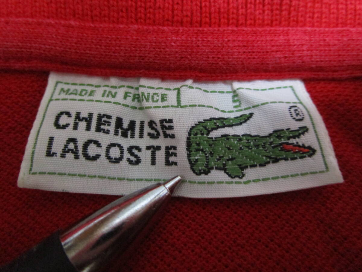 激レア!80s!ヴィンテージ!フランス製!良好即決!LACOSTE ラコステ L1212 フレラコ メンズ 半袖 ポロシャツ RED 赤 無地 size 5