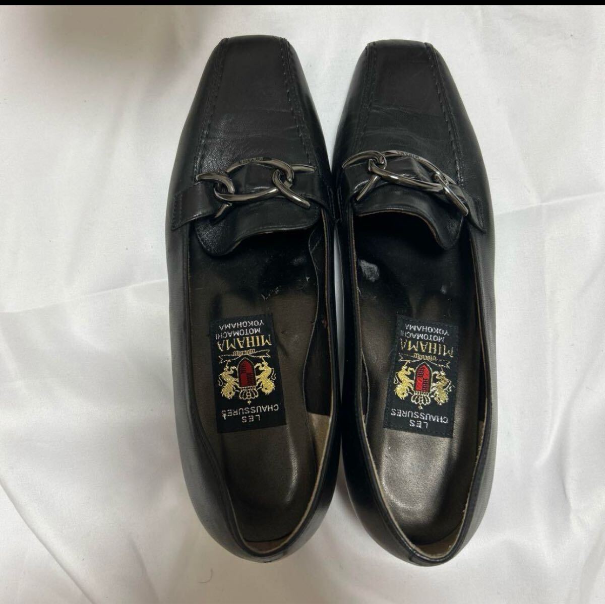 MIHAMA ミハマ ローファー ブラック 本革 チェーン装飾 レディース 靴