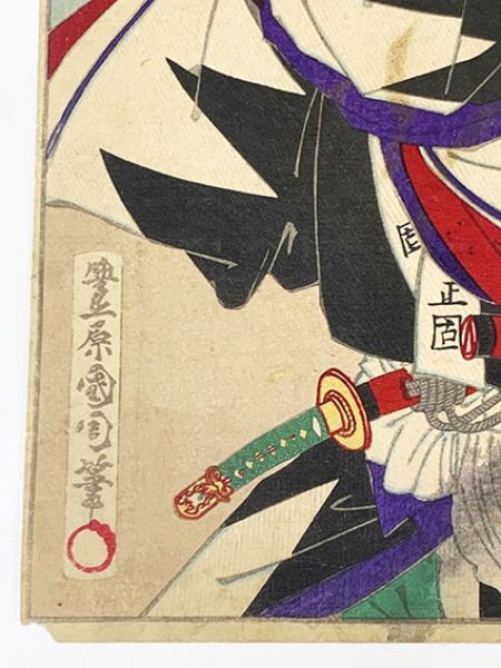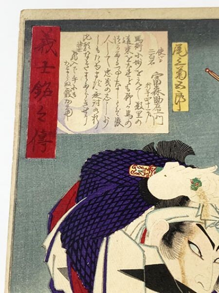 国周浮世絵「義士銘々伝 富田助右衛門」 木版画 35.5×23.5 Kunichika 豊原国周