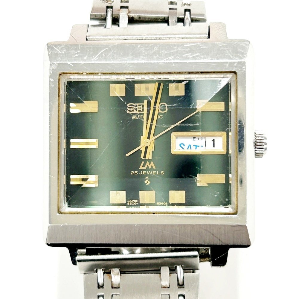 【1円スタート】【訳あり品】SEIKO セイコー 5606-5080 ロードマチック カットガラス SS グリーン系文字盤 自動巻き メンズ腕時計 465896