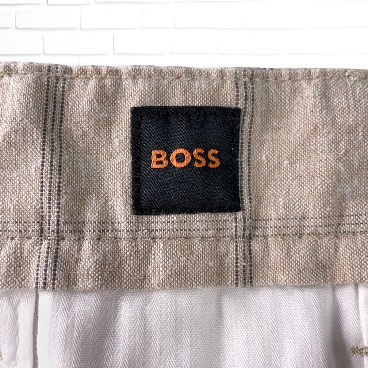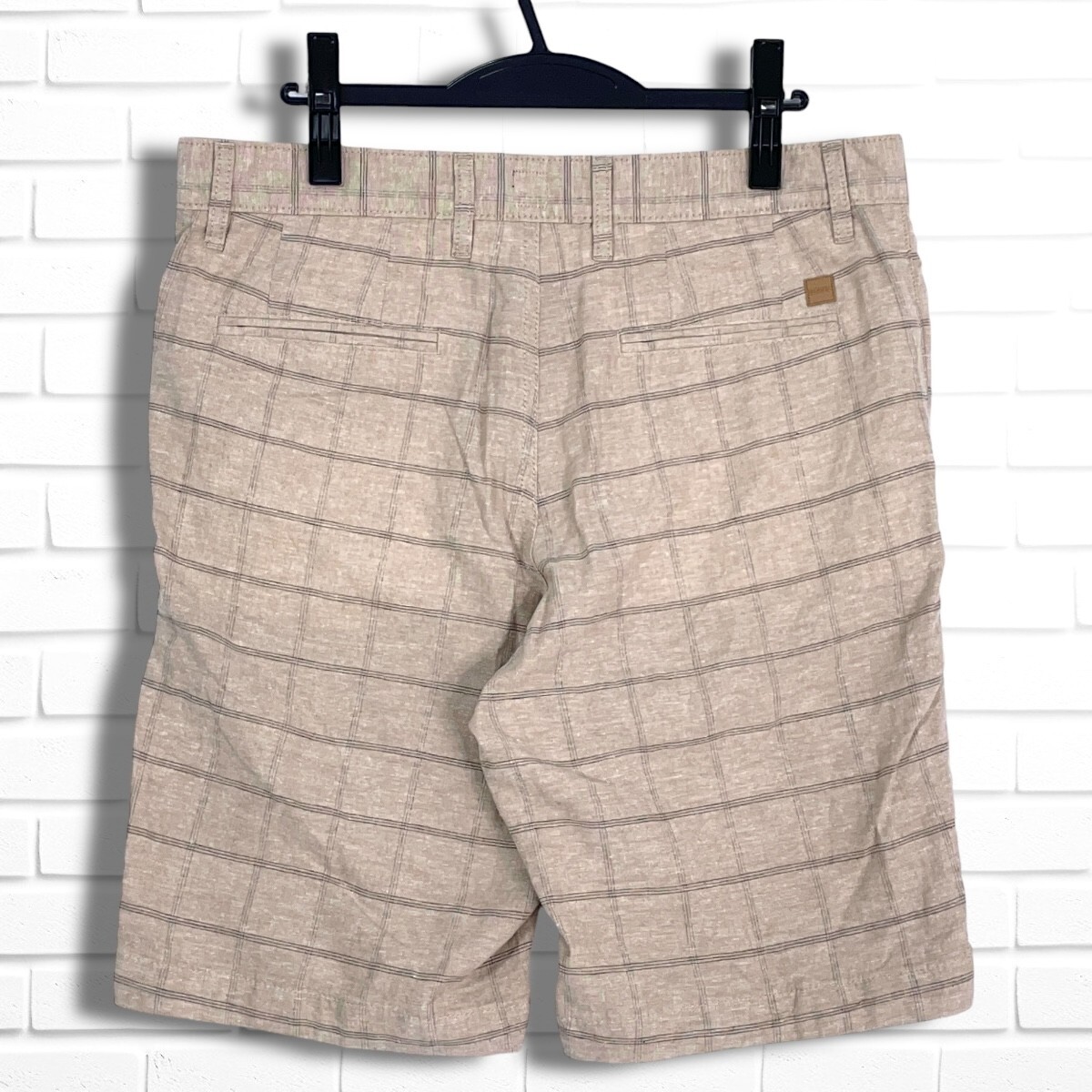 ◆良品◆ BOSS ボス ヒューゴボス チェック ショート パンツ ベージュ系 メンズ 32 ◆送料無料◆ 1615H◎
