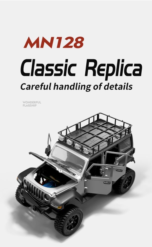 本格派のオフロード走破性を楽しめる「RCクライマー MN128 4WD クライミングバギー」です。