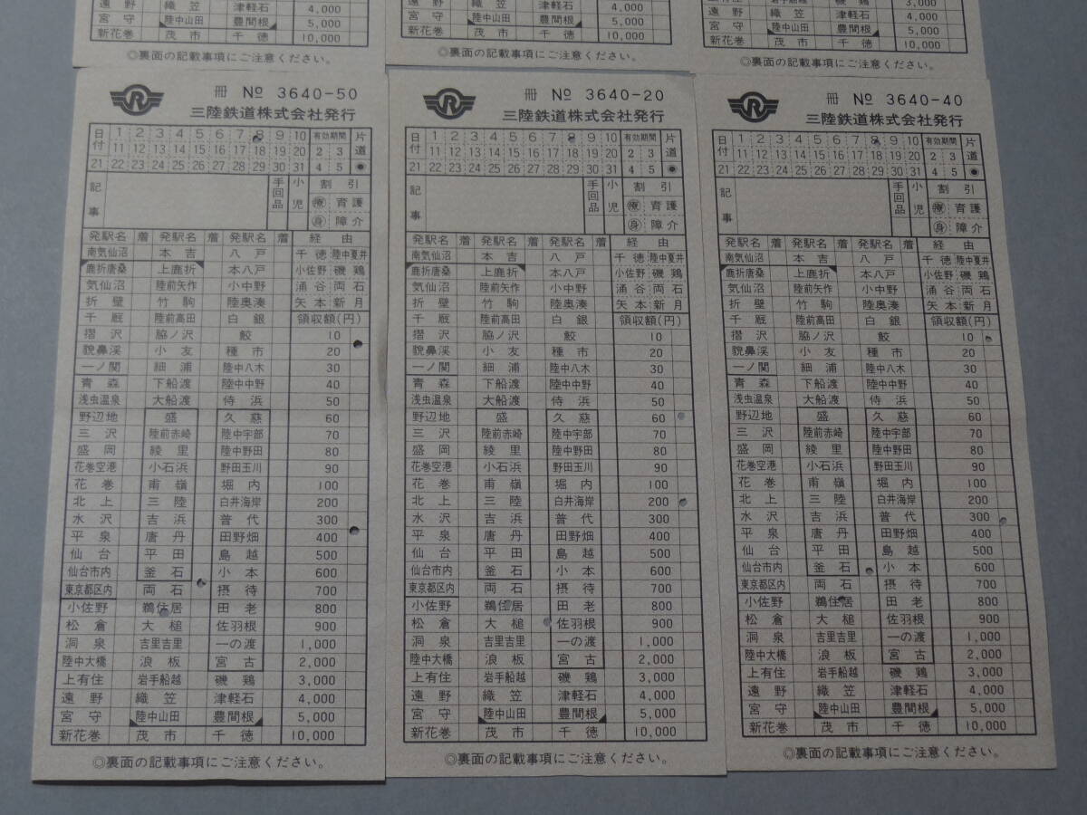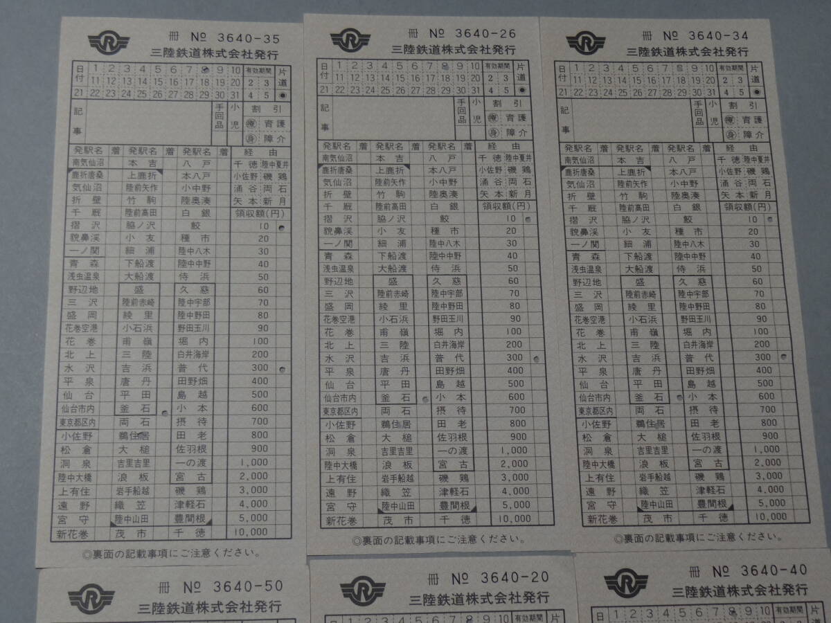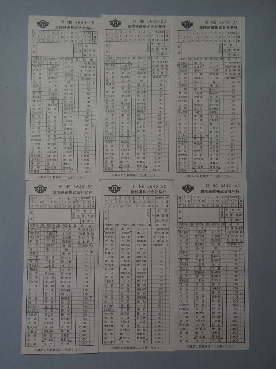 【三陸鉄道】駅名式特別補充券 6枚 (使用済み)