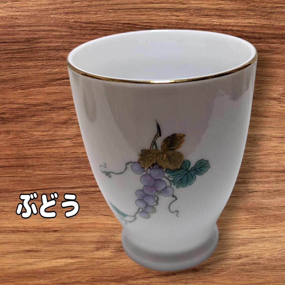 翔優作の金彩果実フリーカップ二脚です。信用組合のいただき物です。未使用品ですが、箱に汚れあります。フリーカップは綺麗だと思います。