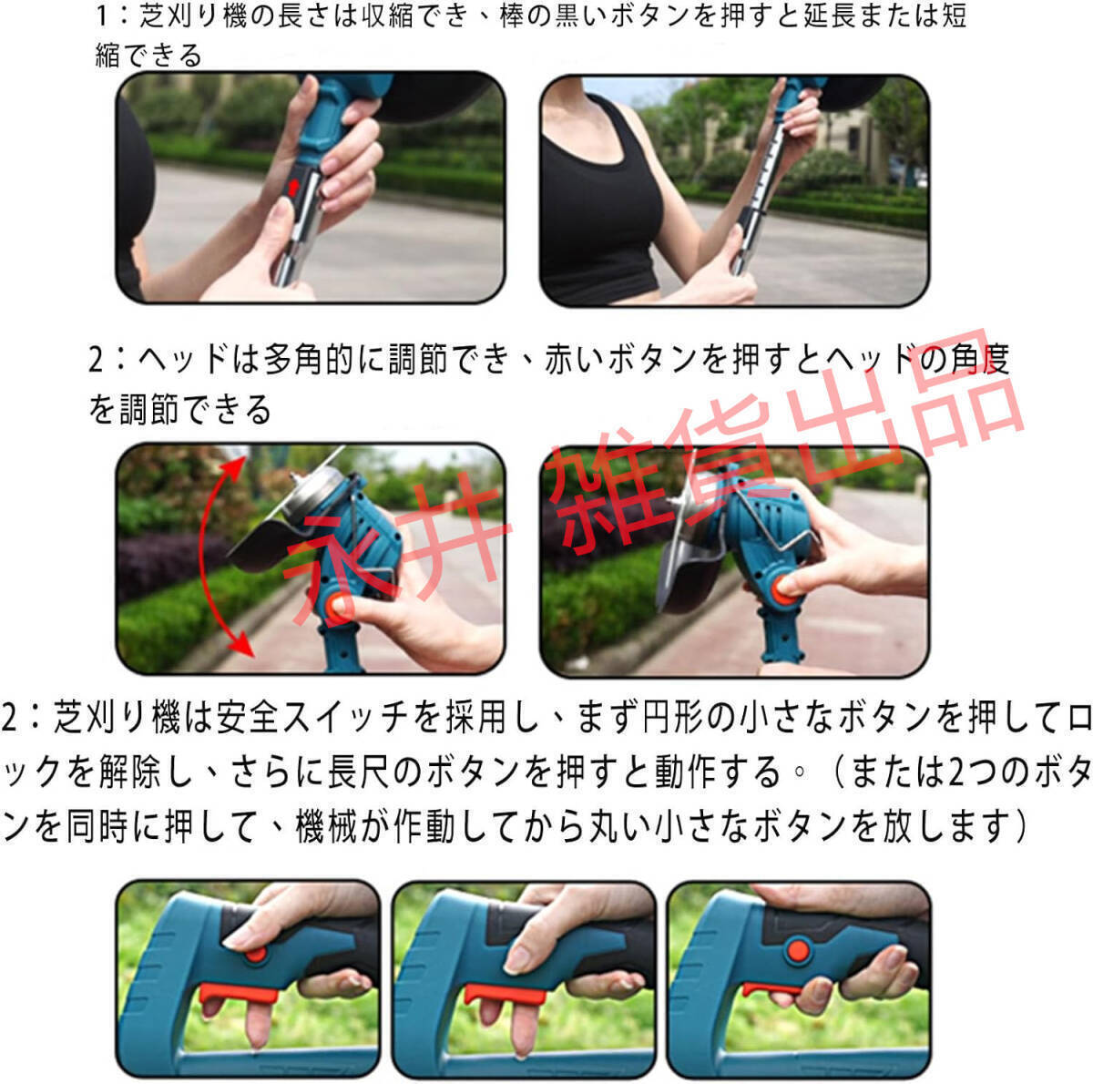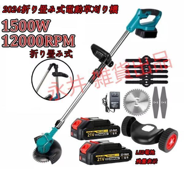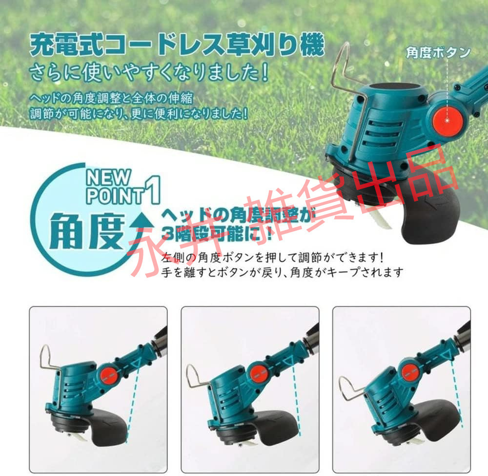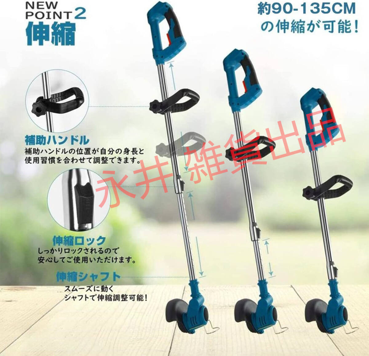 充電式 草刈機 3IN1 折り畳み式 収納性 伸縮式 ロング型 車輪付き 3種類替刃付き 軽量 低騒音 マキタ 18Vバッテリー併用 新品