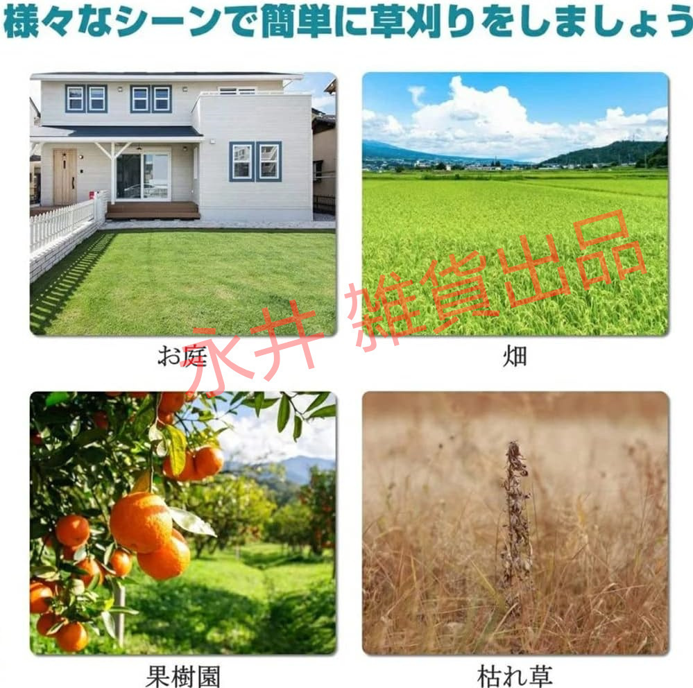【強力&低騒音】12000回/分の高速回転の純銅ブラシレスモーターが採用されて、強力で草刈の効率を大幅に向上させます。このモーターは低反動物理原理に基づき、作動時の振動軽減を通じてモーターの作動音を軽減し、低騒音が実現します。住宅地で草刈り中、近所にご迷惑をかけない。低騒音だけではなく、手も痺れにくい。ラクラクに雑草を刈り取り!