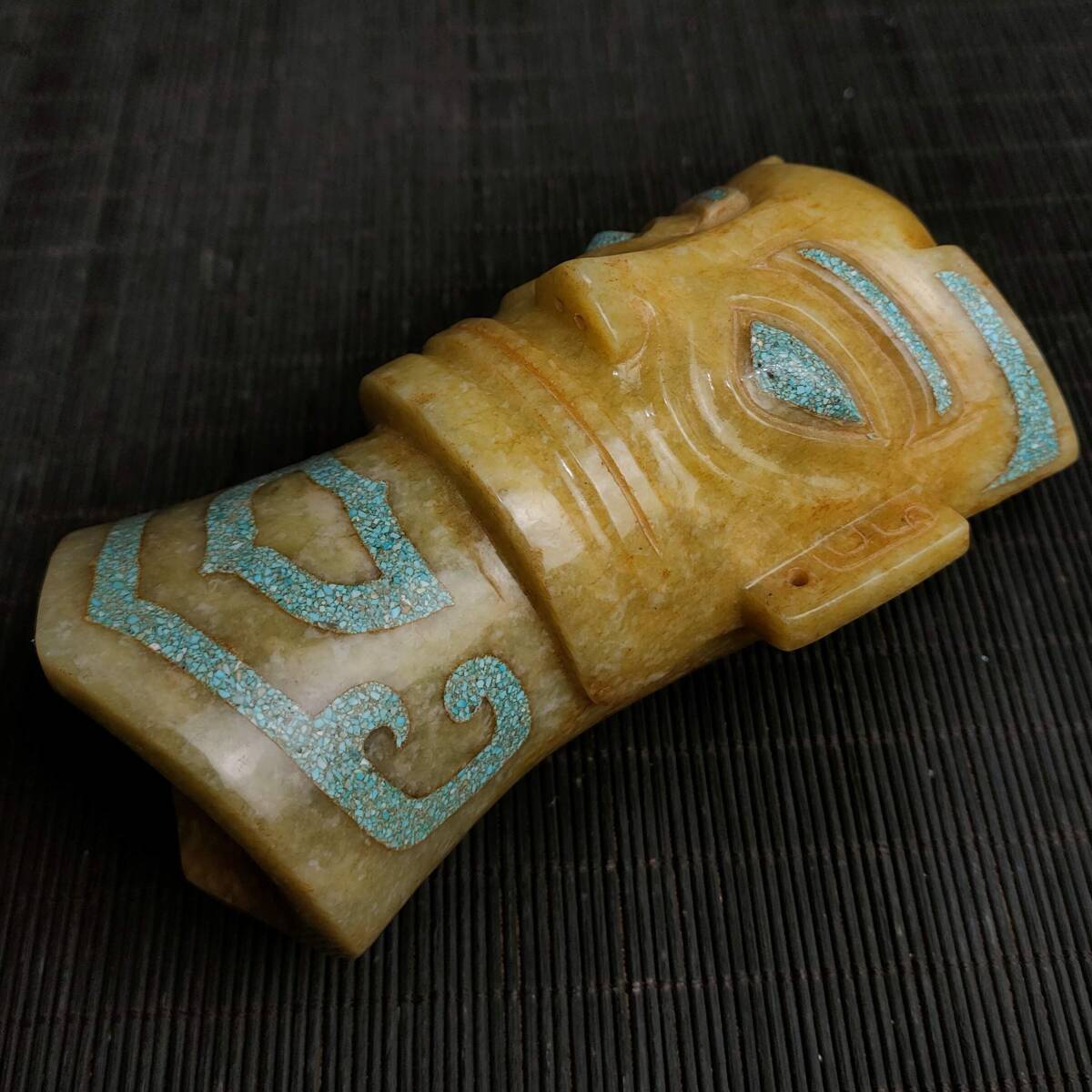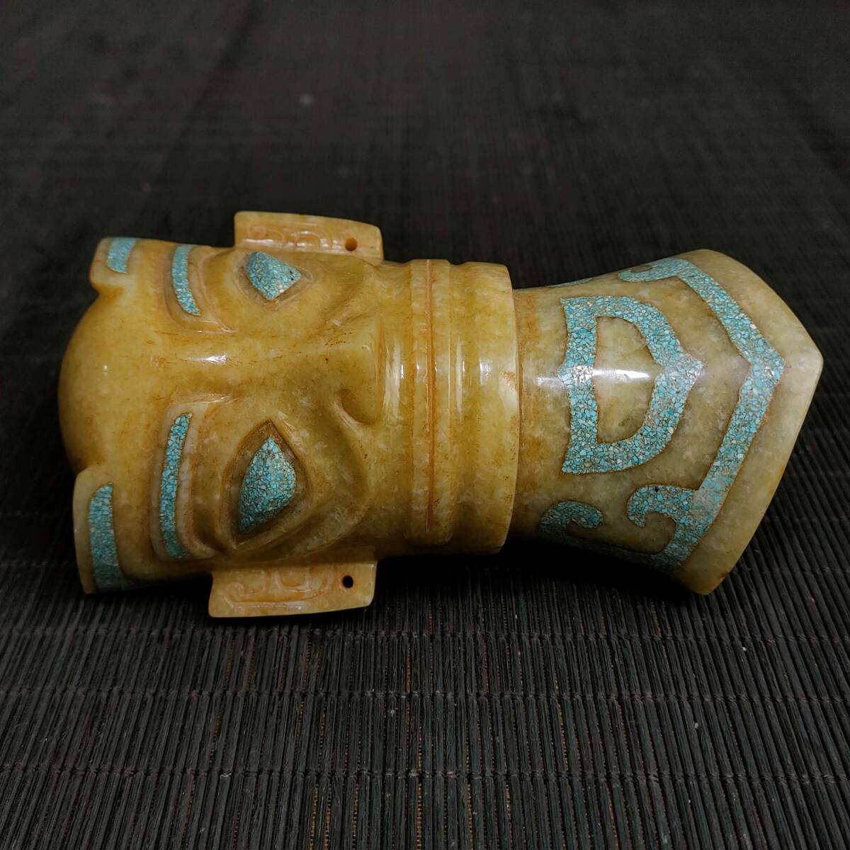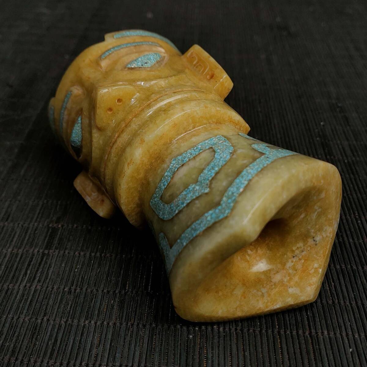 *珍品旧蔵* 清 青海料 はめ込む松石 三星堆人像 極細工 唐物 中国古玩 骨董品 古美味 H48