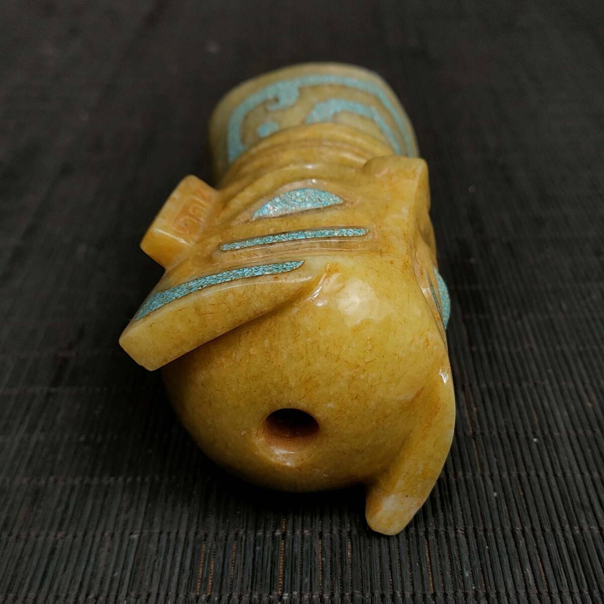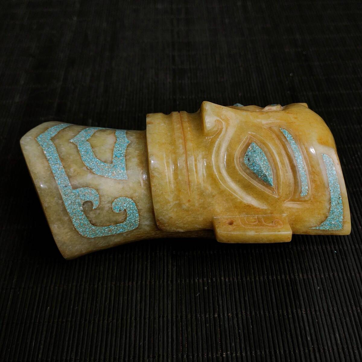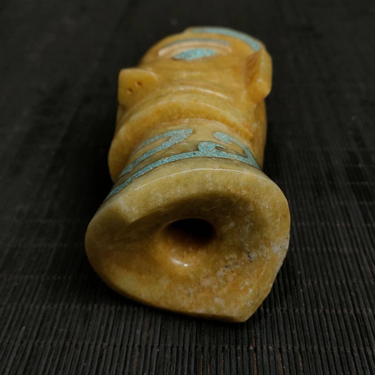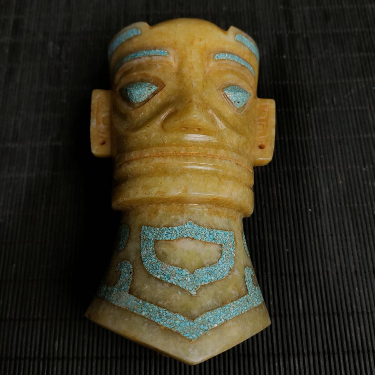*珍品旧蔵* 清 青海料 はめ込む松石 三星堆人像 極細工 唐物 中国古玩 骨董品 古美味 H48