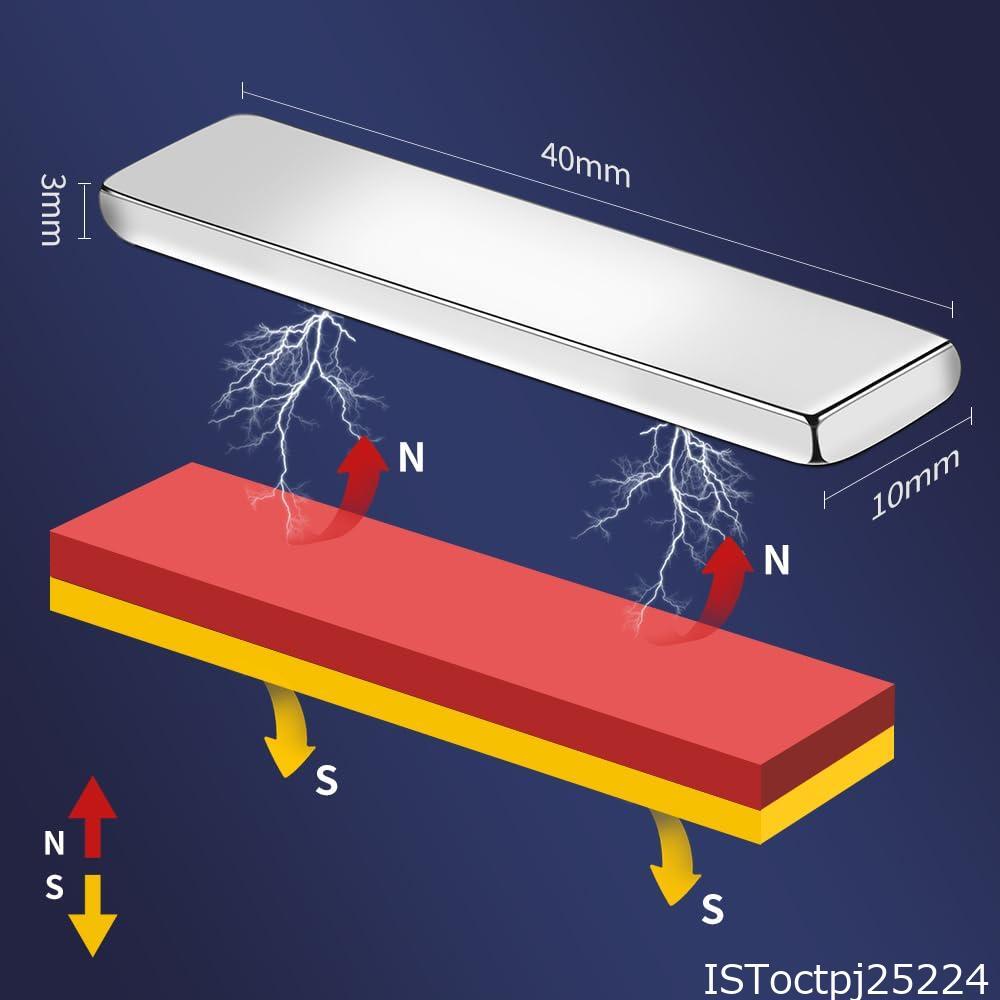 強力マグネット 超強力磁石 40x10x3mm 両面テープ付き 4個セット