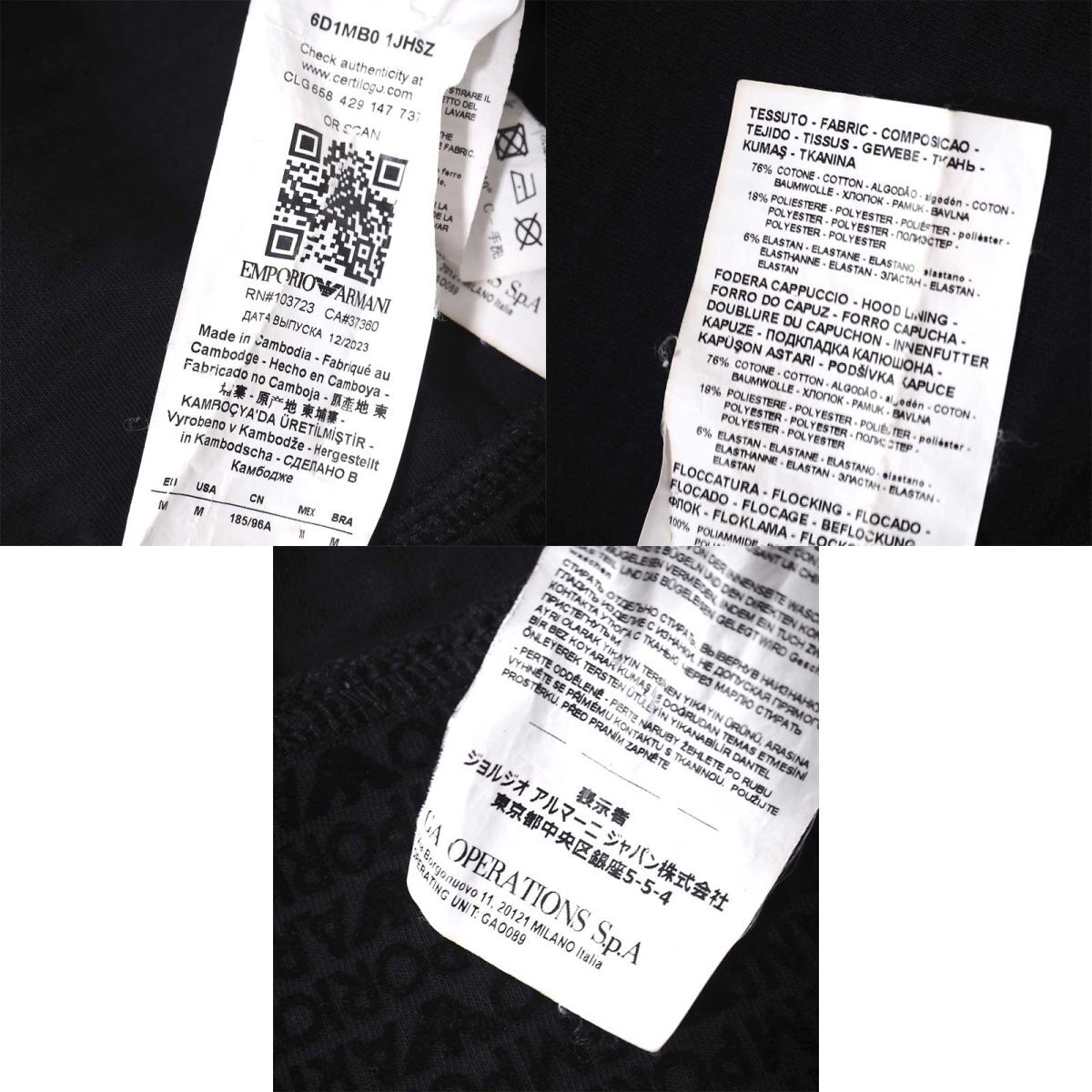 | 商品名 | 【良品】エンポリオアルマーニ EMPORIO ARMANI 24SS ロゴ総柄 ジップアップ パーカー ブラック M メンズ 正規品 5-ZG047 |
