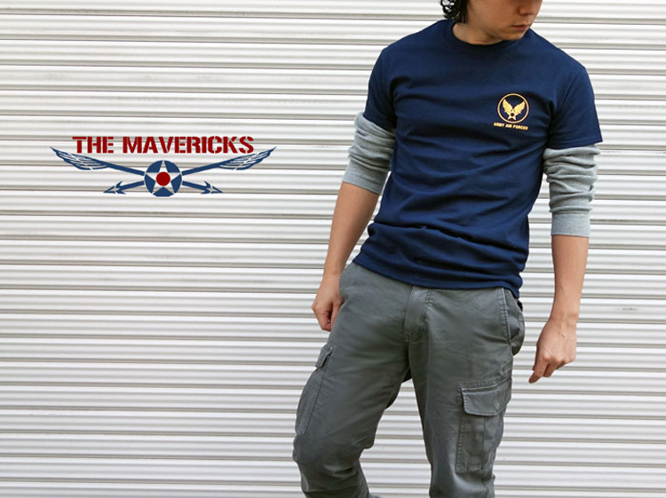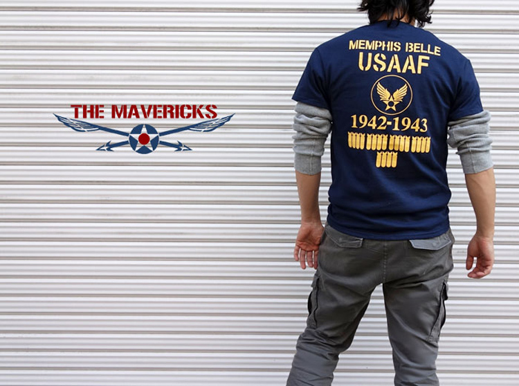 THE MAVEVICKS ブランド ミリタリー Tシャツ S 半袖 メンズ 爆弾エアフォース メンフィスベル 紺 ネイビー