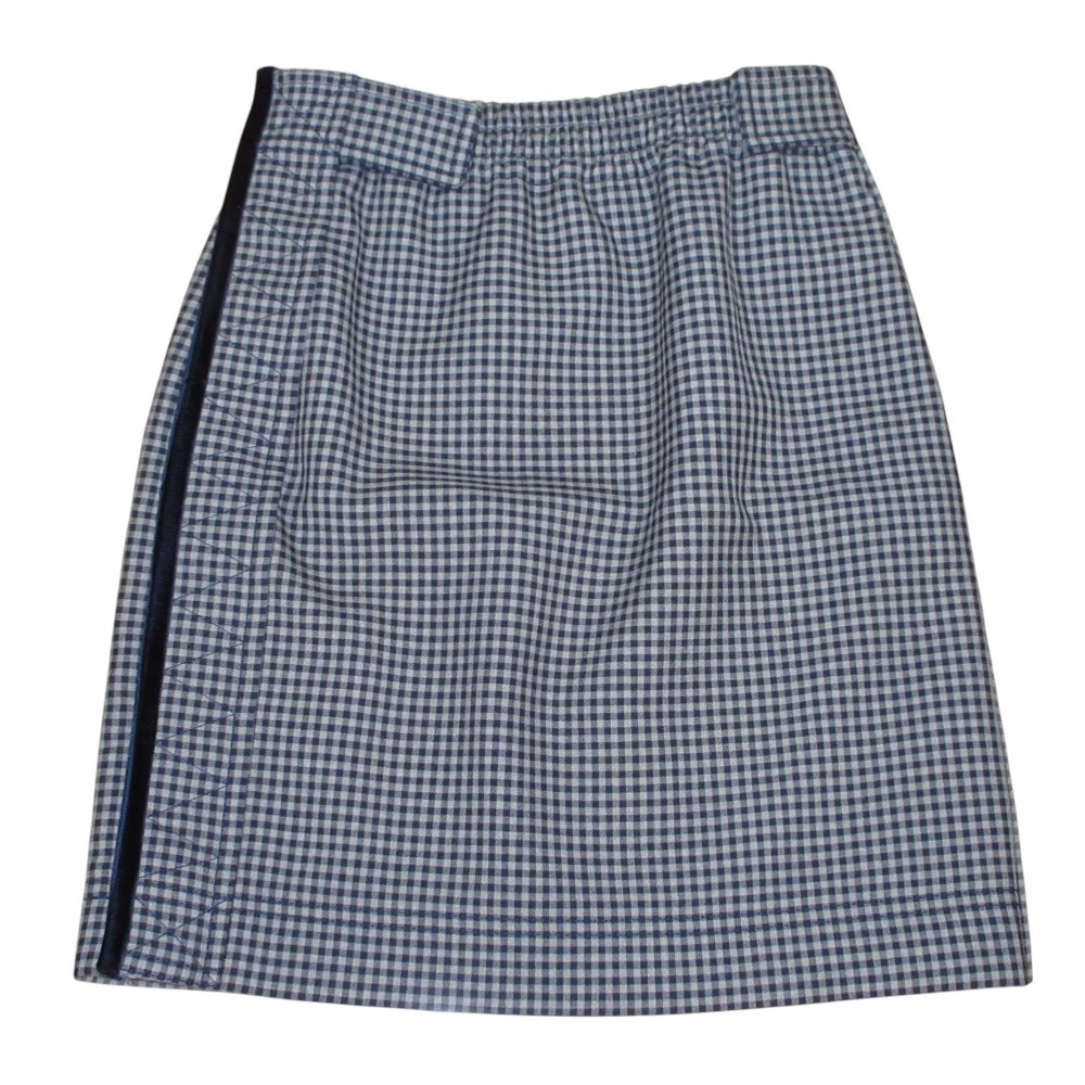 商品名:20年商品 FENDI フェンディ ベロアステッチ ウール チェック ギャザースカート 38 ネイビー グレー