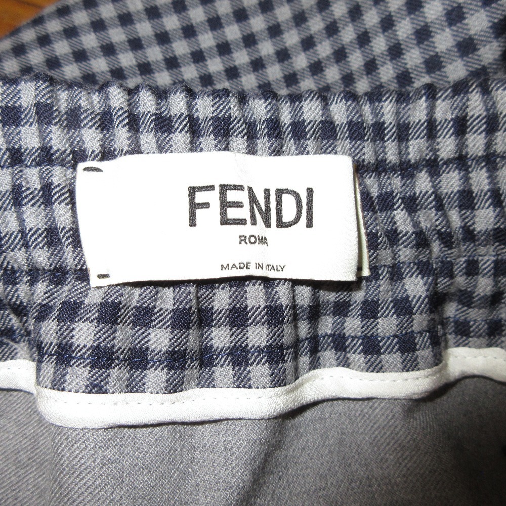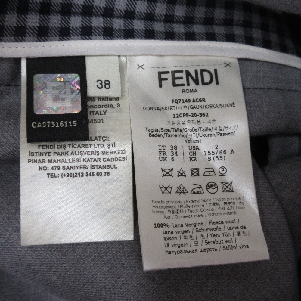 新品同様 20年商品 FENDI フェンディ ベロアステッチ ウール チェック ギャザースカート 38 ネイビー グレー