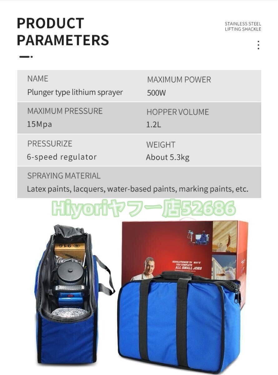 【高性能モーター】500Wモーターは、最小限の労力で均一なコーティングを行うための細かい扇形のスプレーパターンを実現し、屋内と屋外の両方のプロジェクトで信頼性の高いパフォーマンスを保証します。家具の仕上げから大規模な壁の塗布まで、この噴霧器はさまざまな作業を簡単に処理します。さらに、付属のツールキットは保管に便利で、メンテナンスが容易になり、長期的な信頼性が保証されます。