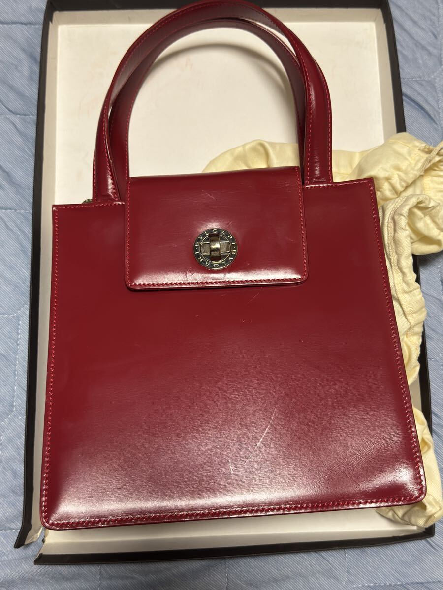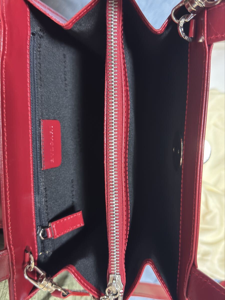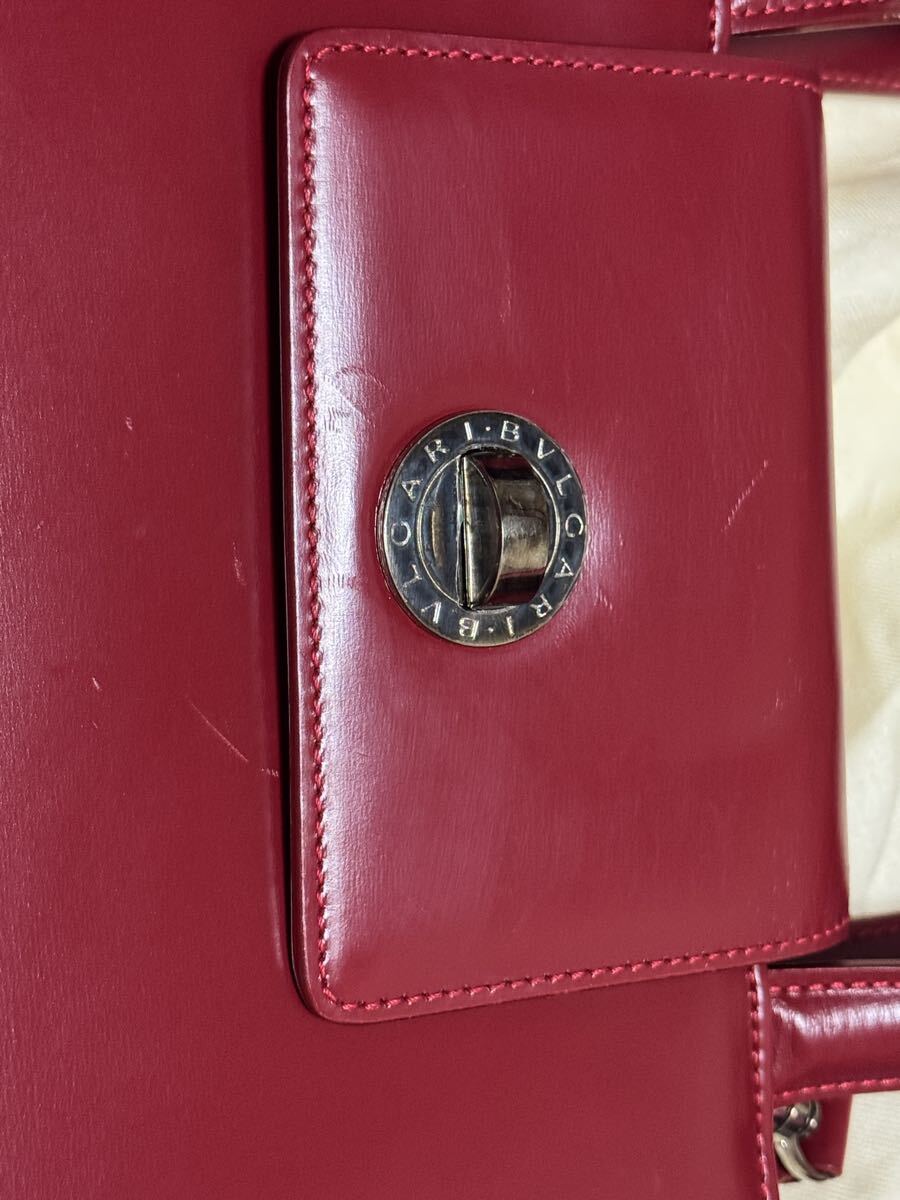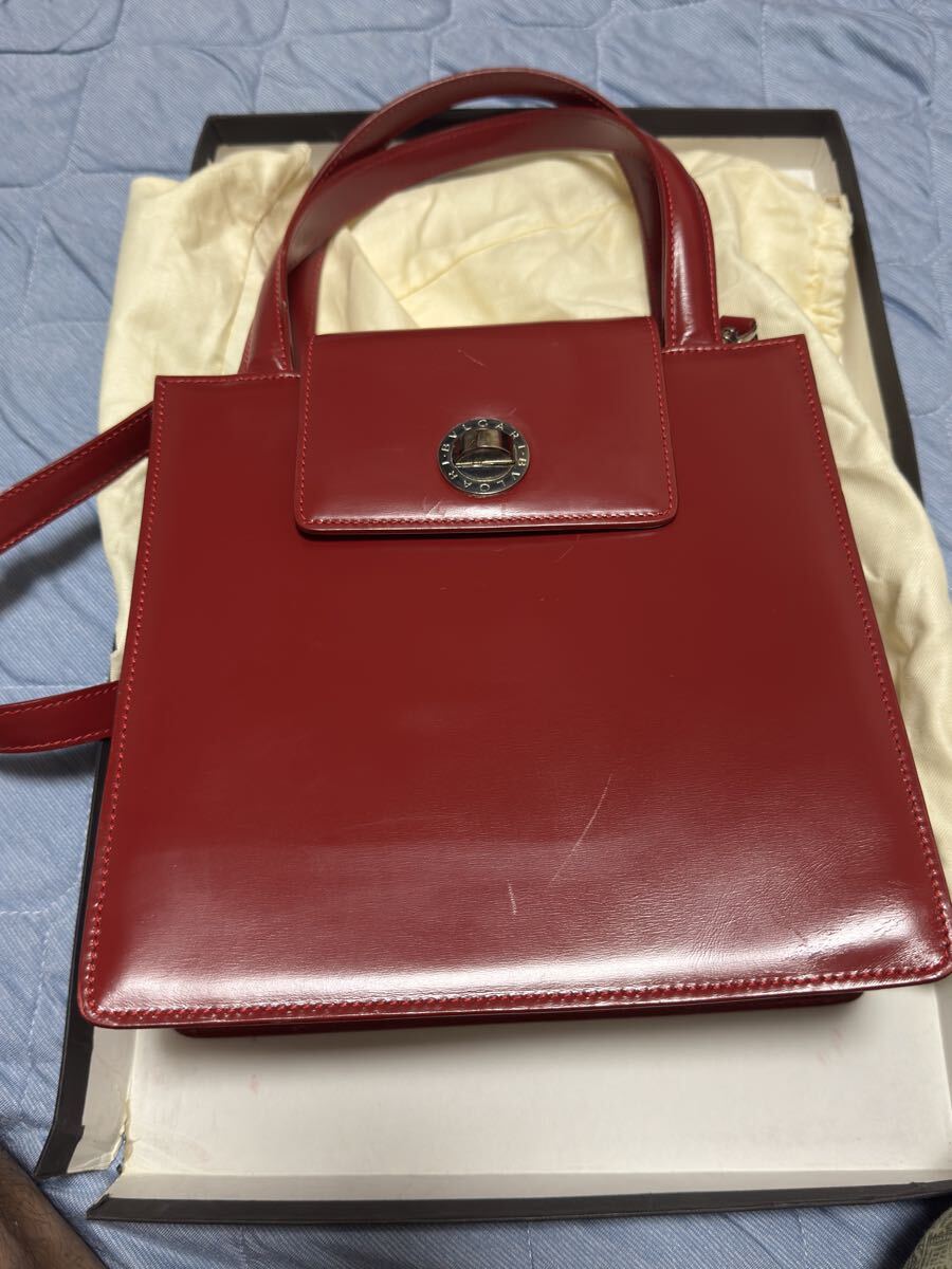 ブルガリのスムースレッドレザーショルダーバッグです。