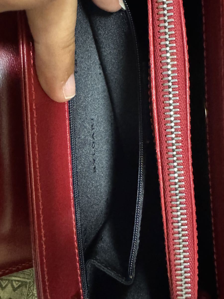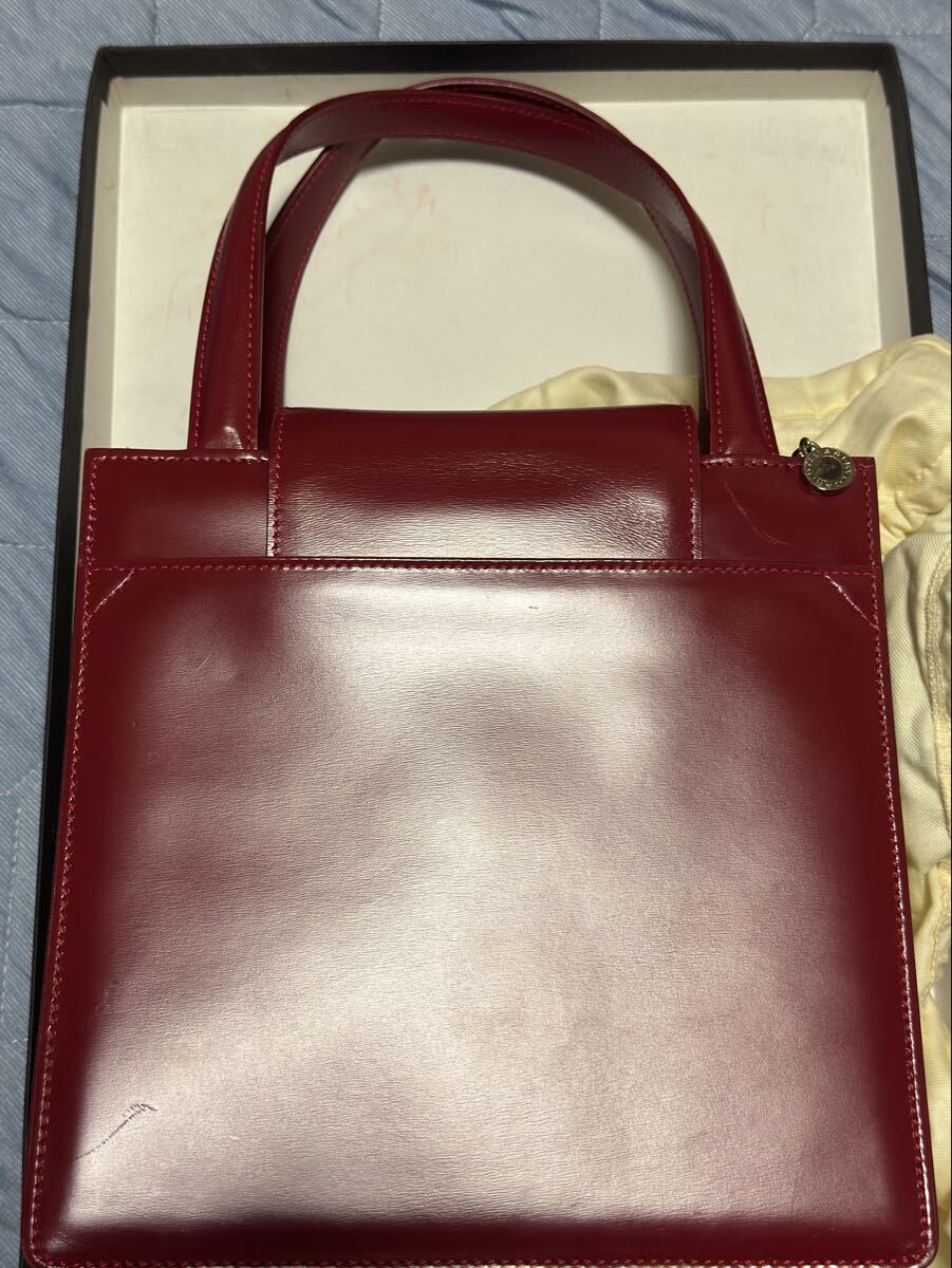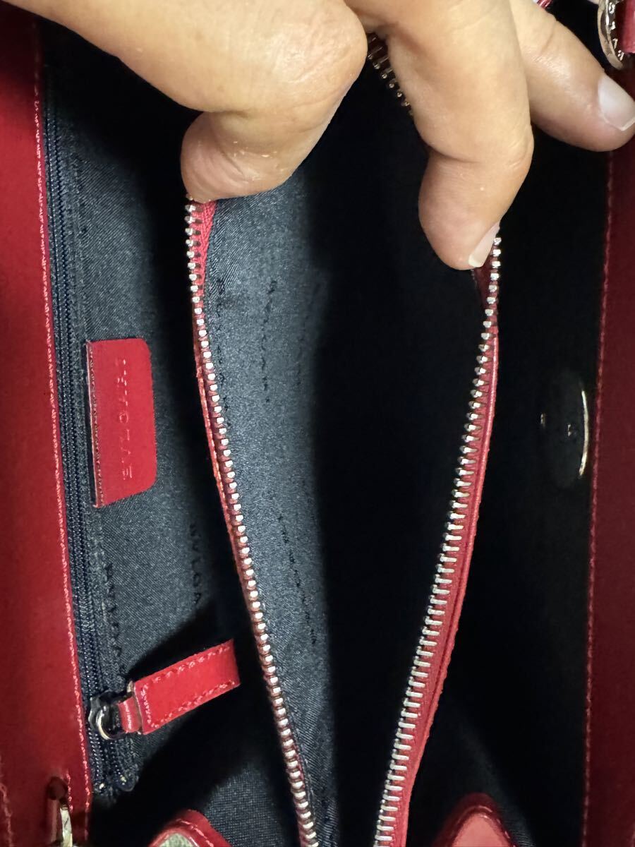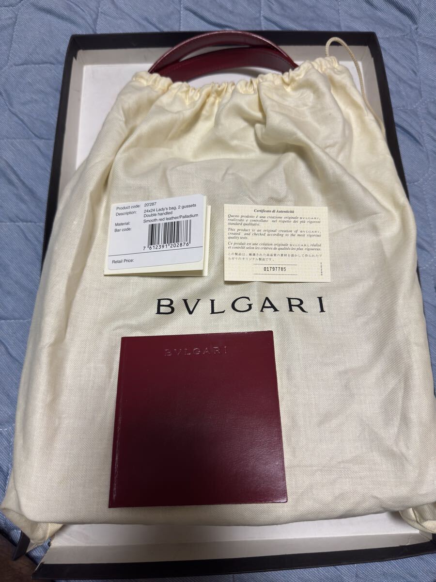 ブルガリのスムースレッドレザーショルダーバッグです。