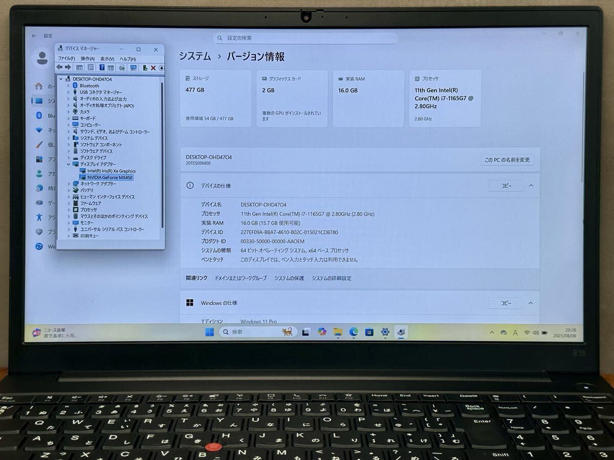 ・CPU: Core i7-1165G7 2.8GHz, ターボブースト: 4.7GHz 第11世代 (Tiger Lake, 2020-2021)