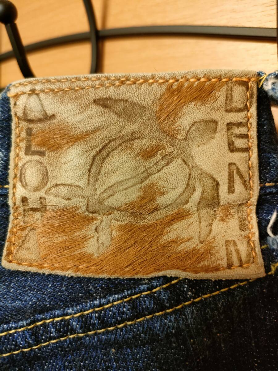 ラベルはハワイで神の遣いとされる亀を焼印したヘアオンハイド(まだ毛が残っています)で、バックポケットには手刺しで刺繍された刺し子のステッチが入ります。