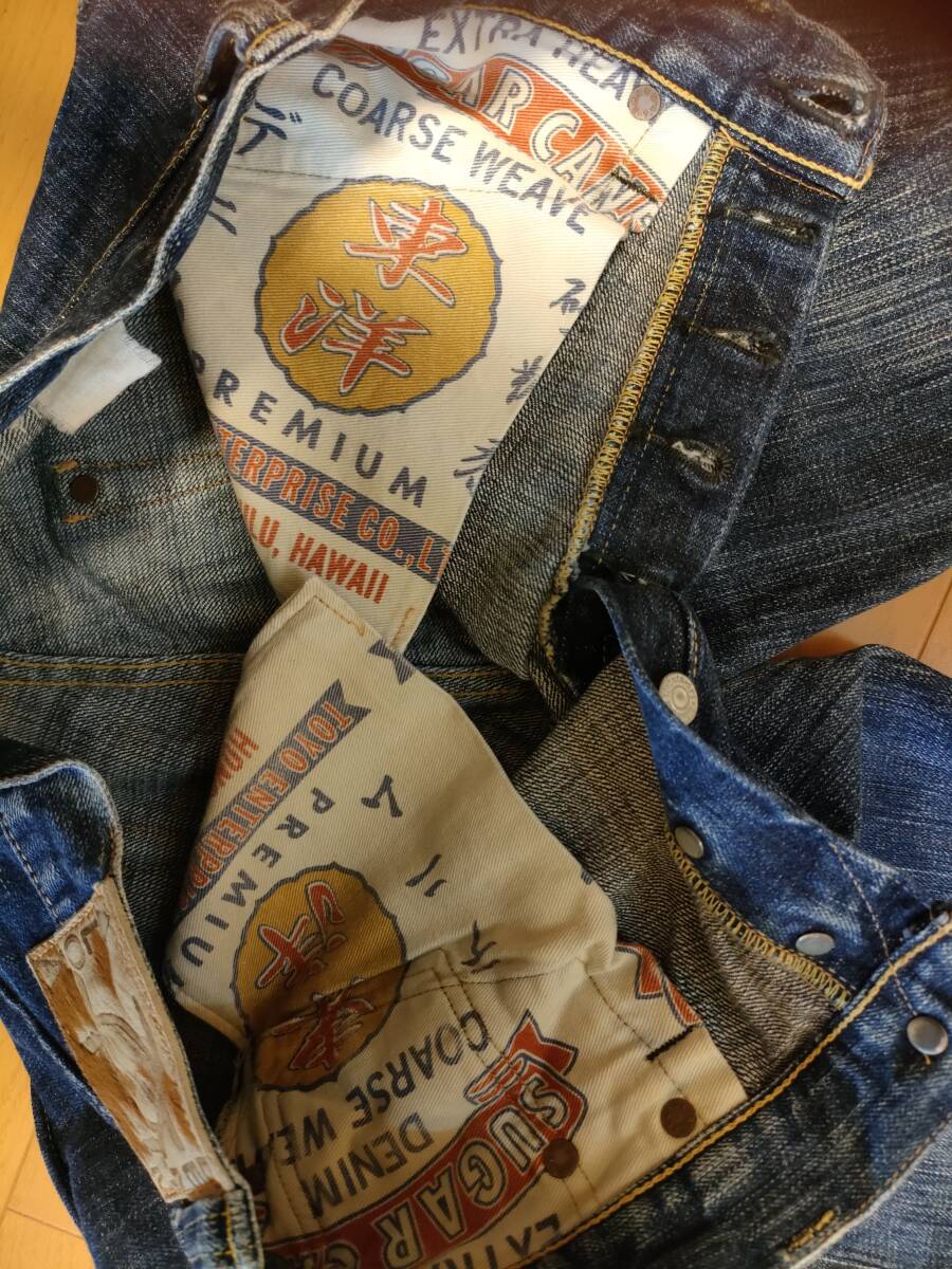 東洋 SUGARCANE シュガーケーン 砂糖黍デニム 亀パッチ ヘアオンハイド W30-31 HAWAII藍混 右綾