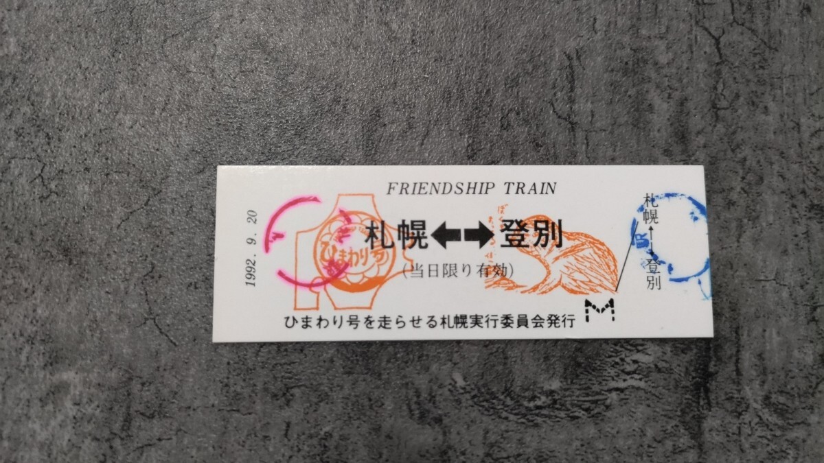 1992年9月20日に運行された、「ひまわり号(札幌⇔登別)」の乗車硬券です。