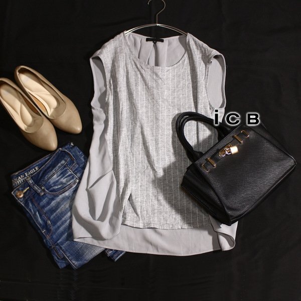 美品 オンワード樫山 iCB アイシービー ストレッチ切り替え ジョーゼット生地 カットソー S 春 夏 25A08