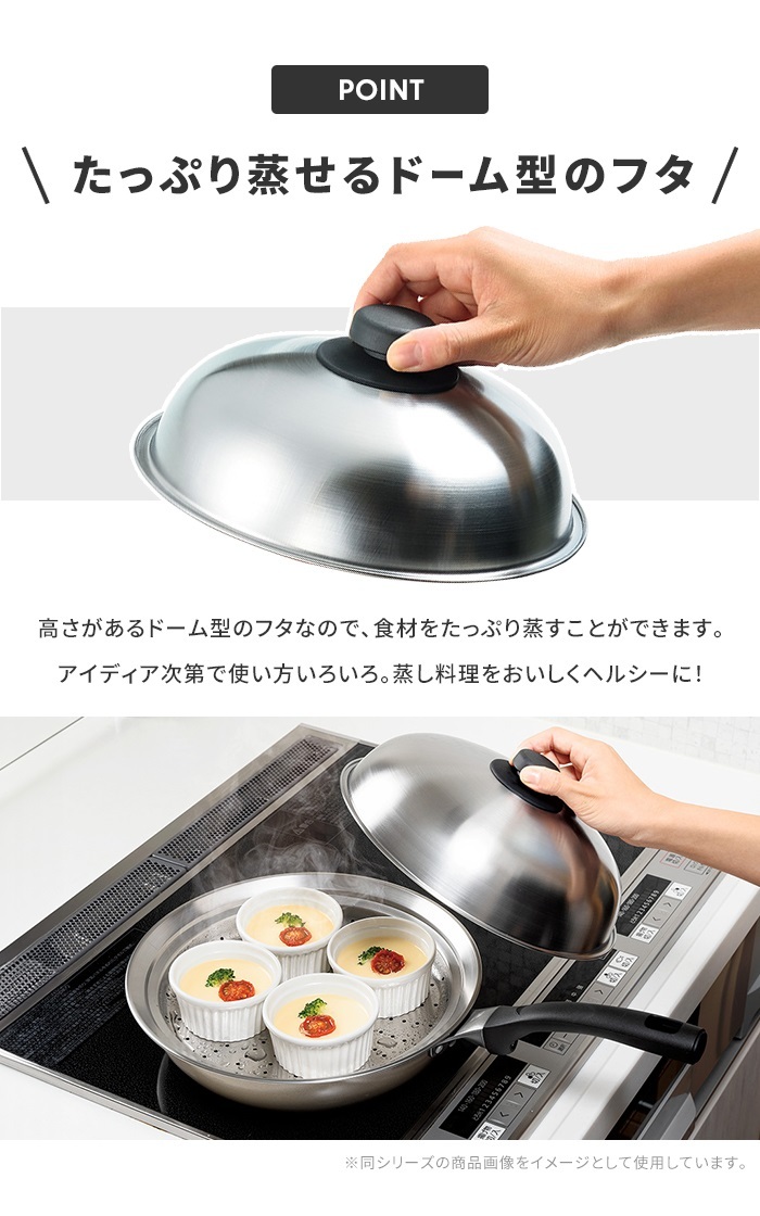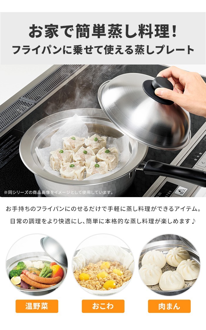 ・お手持ちのフライパンにのせるだけで、手軽に蒸し物ができるスチームプレート |
