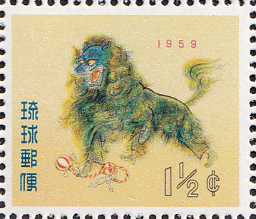 ★早期終了★琉球・沖縄/1959年用年賀切手/しし舞い50面1 シート