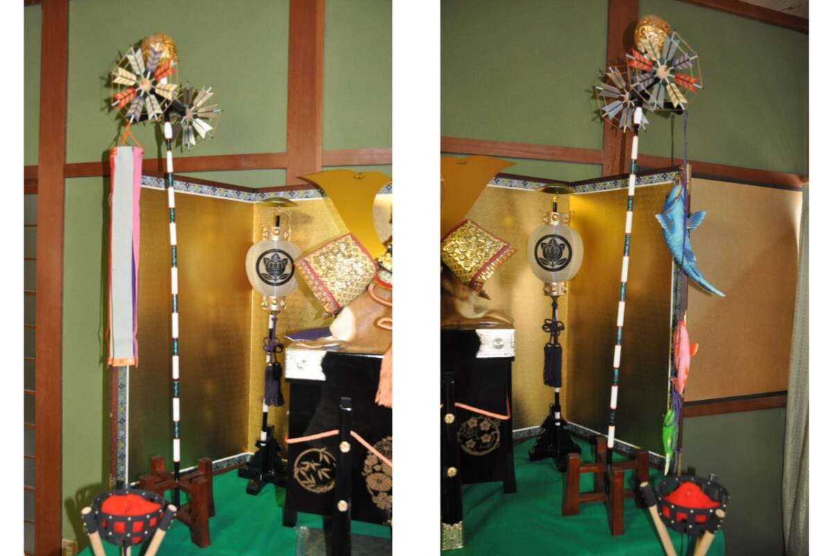 中古 『大野龍玉作 五月人形 源氏兜四段飾り』 おまけ付き | |