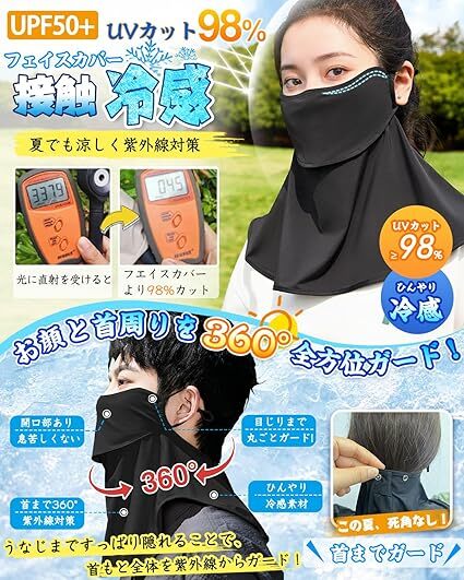 LUYULAKI 冷感フェイスカバー ブラック ネックガード UVカット 日焼け防止マスク 接触冷感 息苦しくない 水分補給可 日よけマスク 布 首 顔 夏 涼しい スポーツ バイク 運転 キャンプ 紫外線対策 男女兼用 | |
