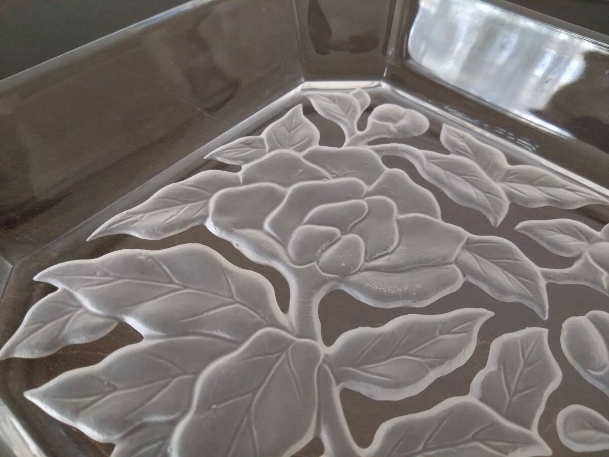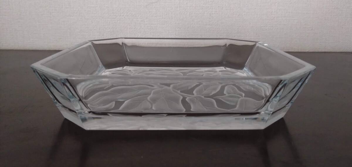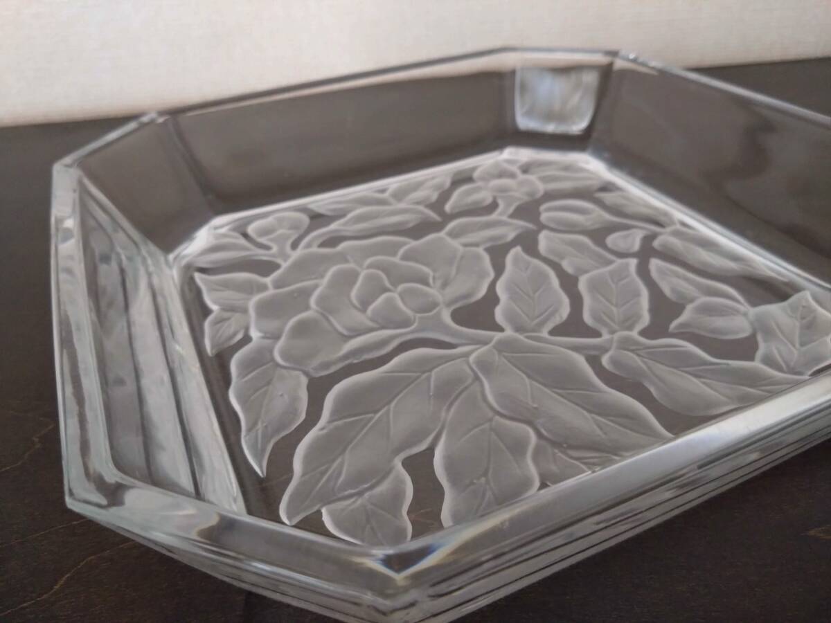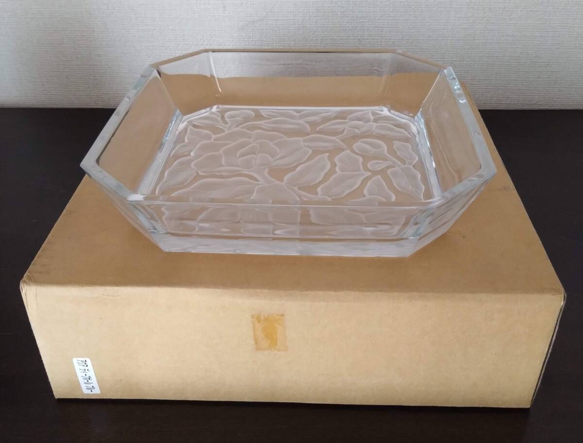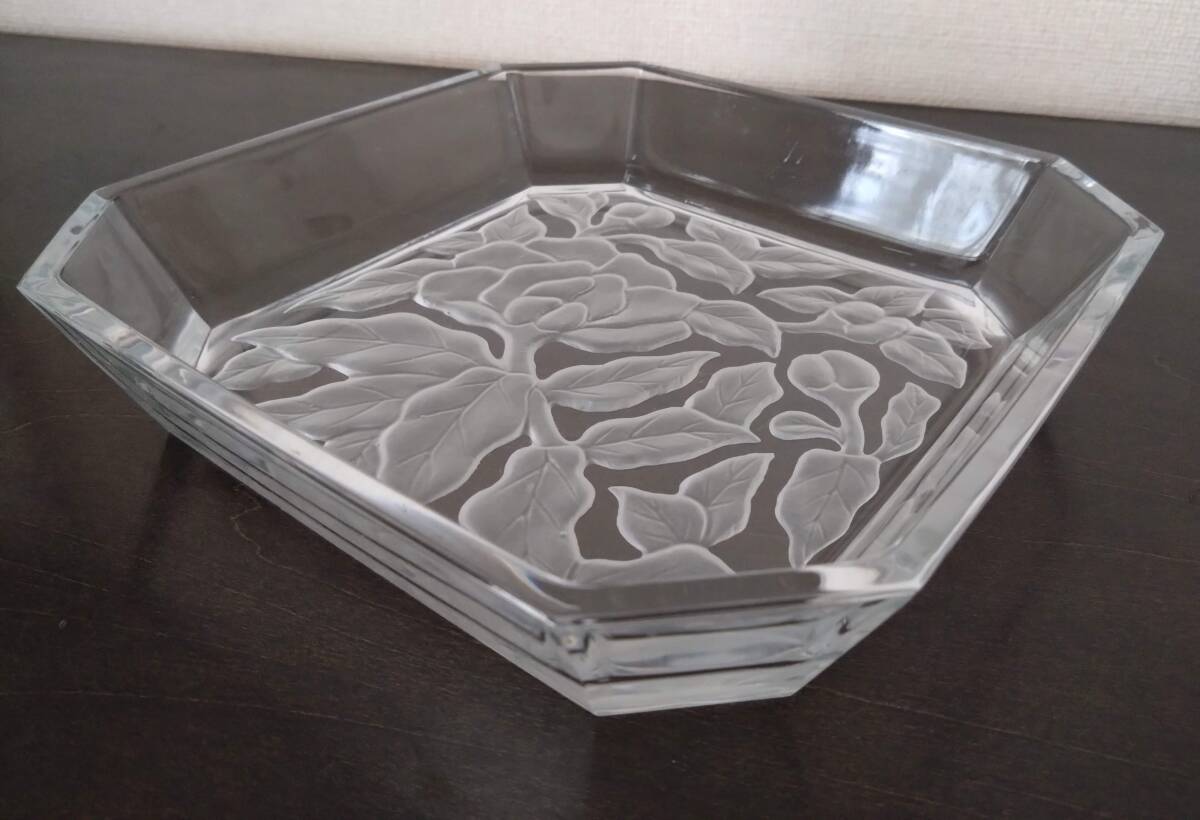 花唐草文角皿 クリスタル 昭和レトロ 大皿 ガラス鉢 角皿  ##
