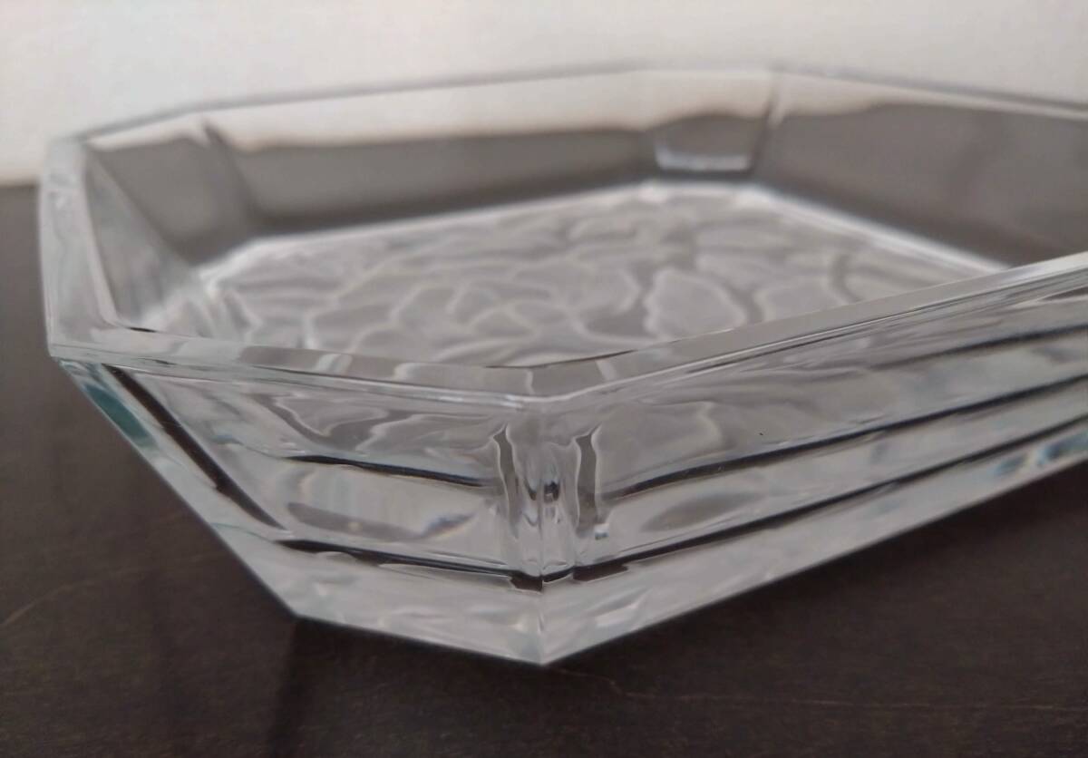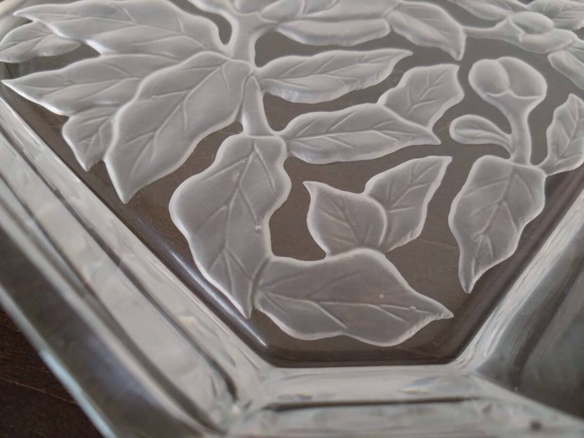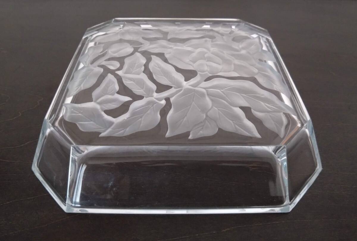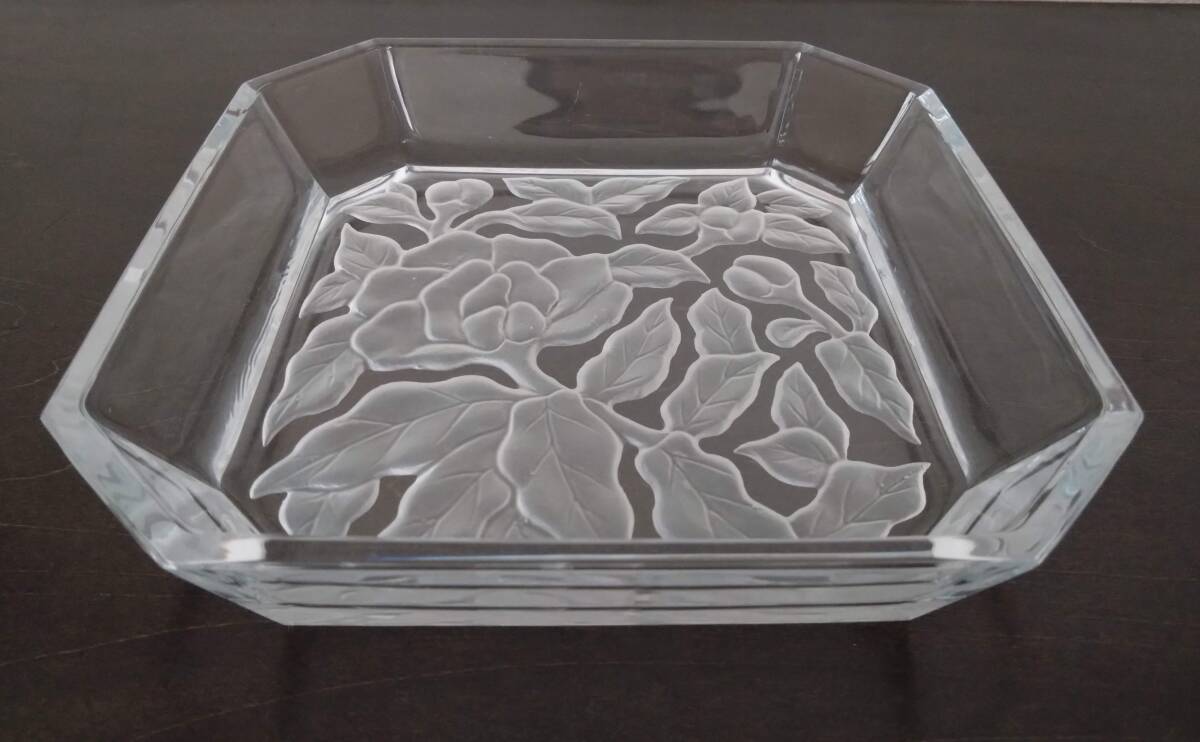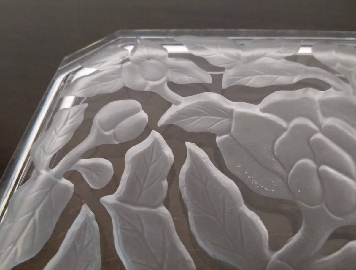 花唐草文角皿 クリスタル 昭和レトロ 大皿 ガラス鉢 角皿  ##