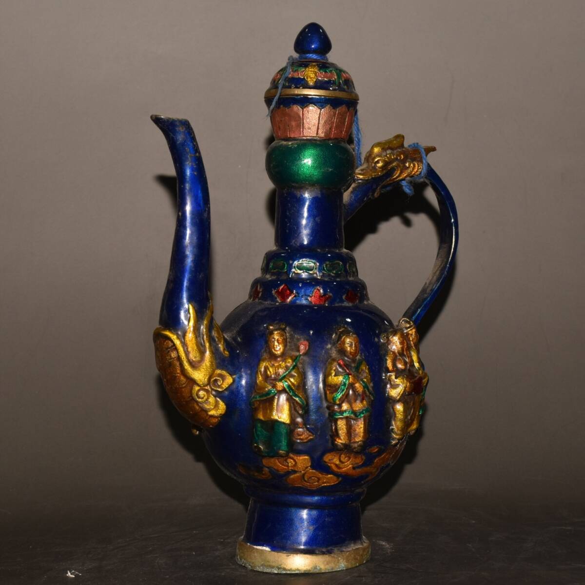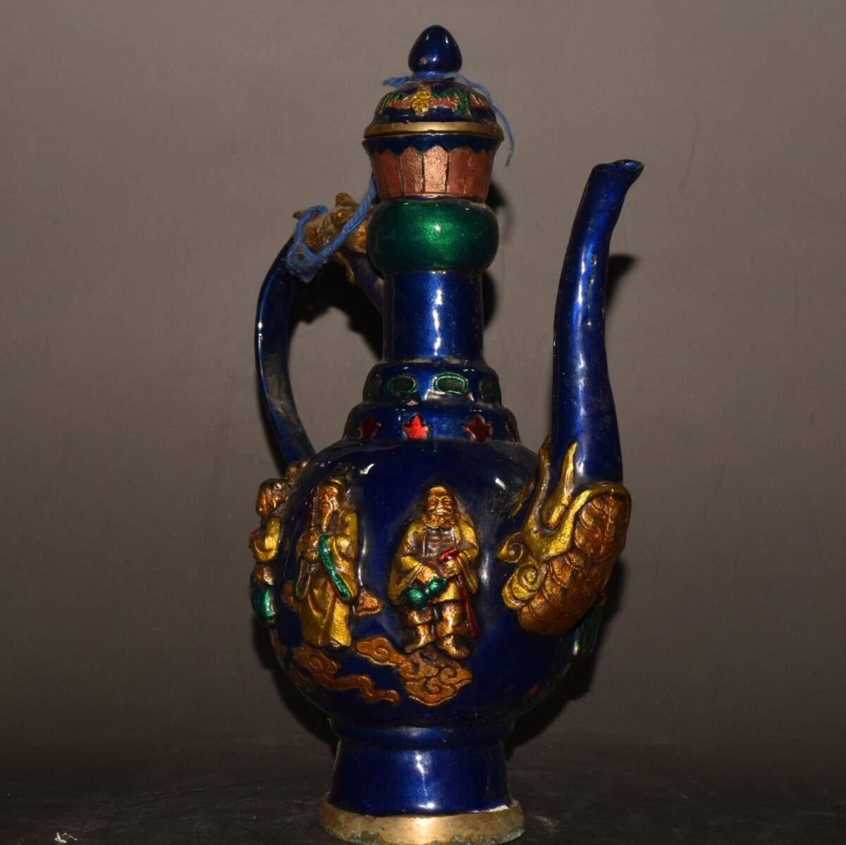 【超珍館蔵】銅製 景泰藍 琺瑯彩 八仙紋 酒壺 置物 賞物 古賞物 古董品 古美術品 時代物 旧家蔵出 稀少珍蔵品