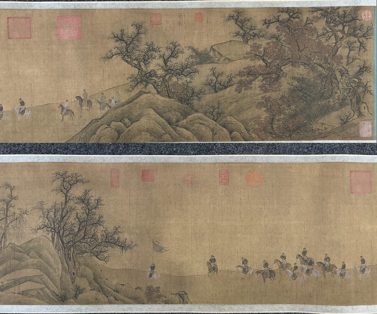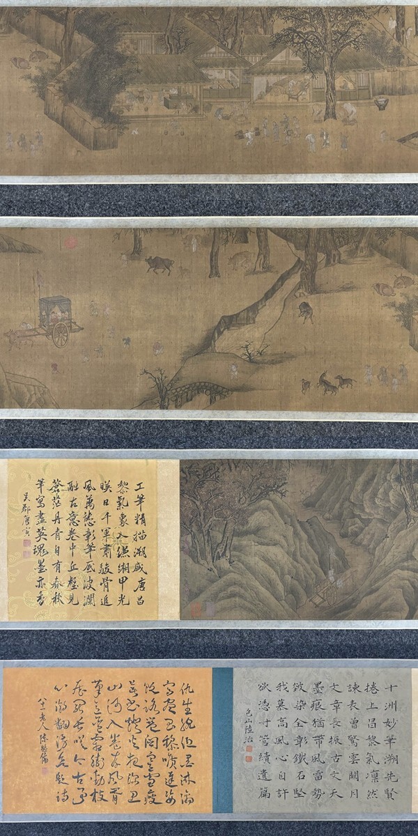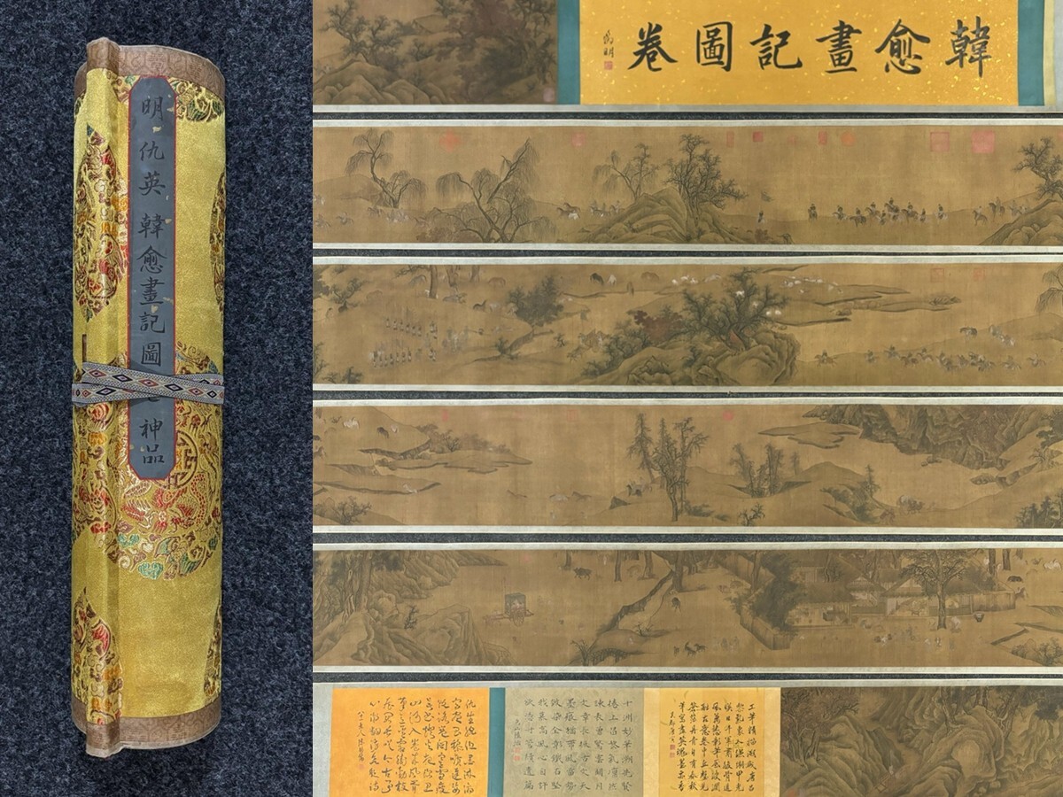 中国書画「明 仇英 韓愈畫記図長巻」肉筆絹本 掛け軸 墨寶妙品 書画横軸 巻き物 古美術 旧蔵出