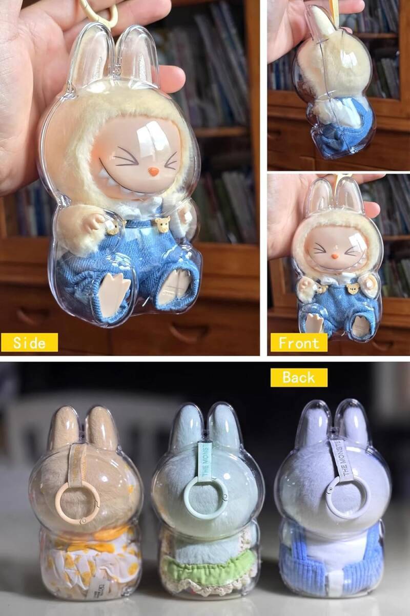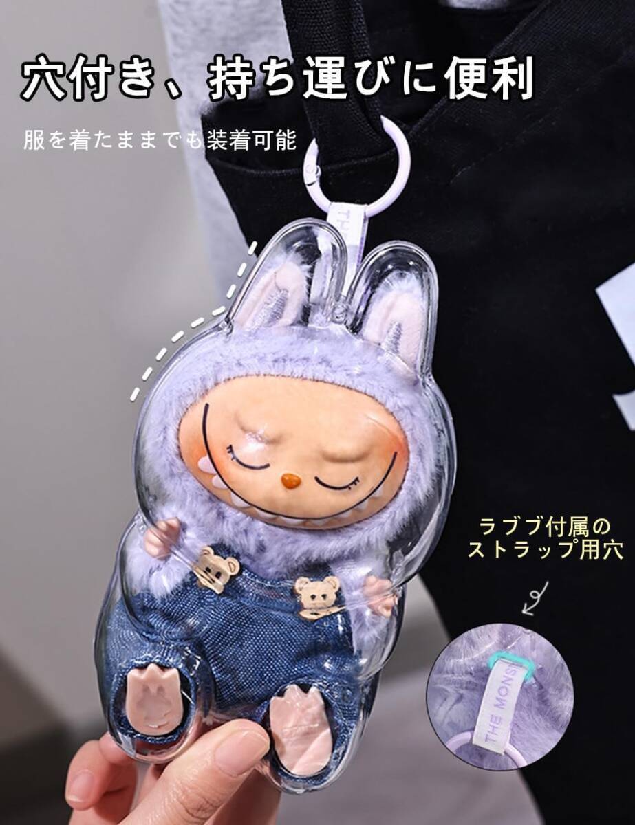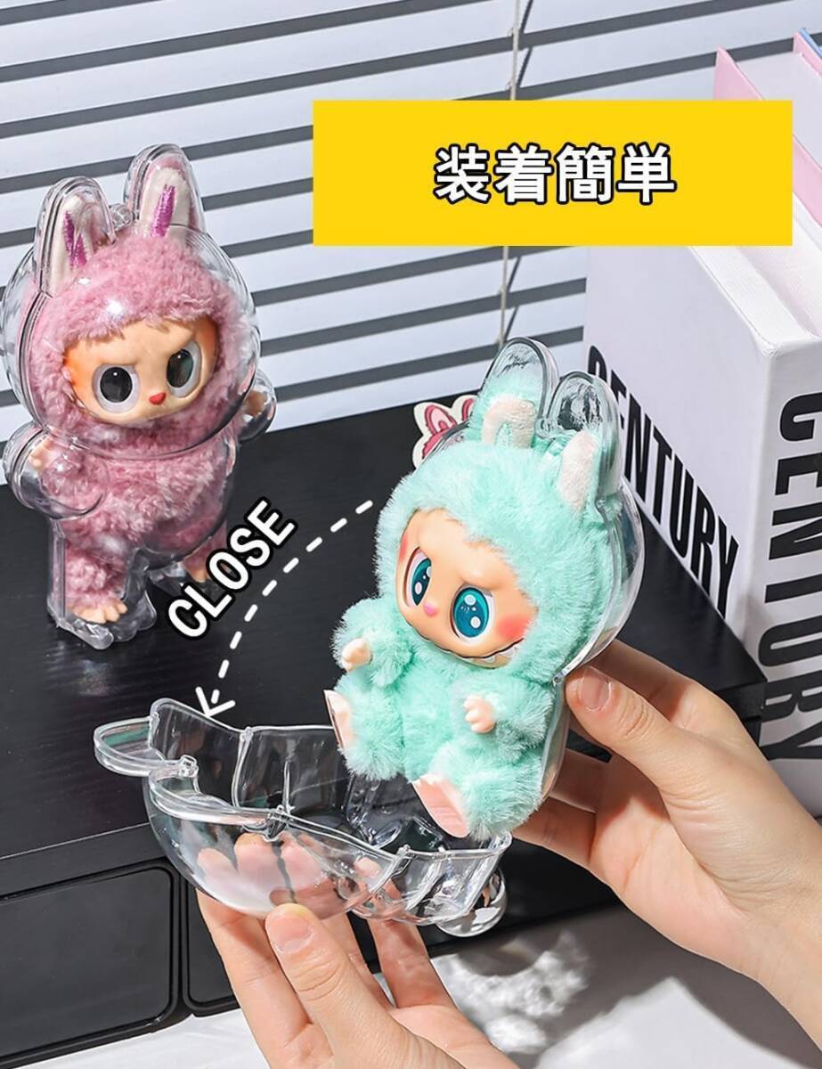 このクリアケースは、高透明PB素材を使用しており、あなたのLABUBUが汚れにくく、安心して外出できるようになります。※注意:本製品はケースのみ、ぬいぐるみ本体は含まれていませんのでご了承ください。