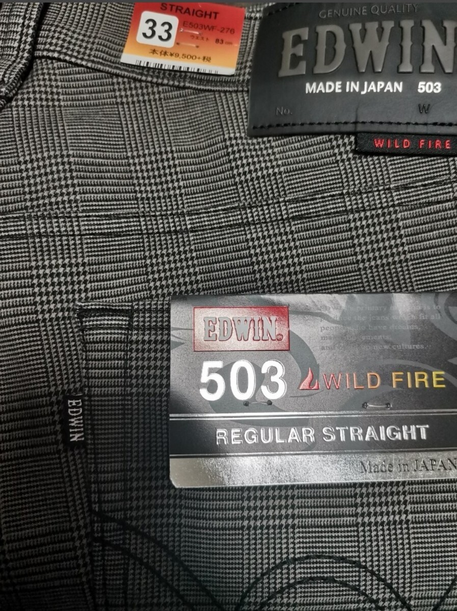 エドウィン WILD FIRE w33になります、未使用、タうグ付きになります、裾あげはしております、股下66になります、多少前後する可能性はあります。