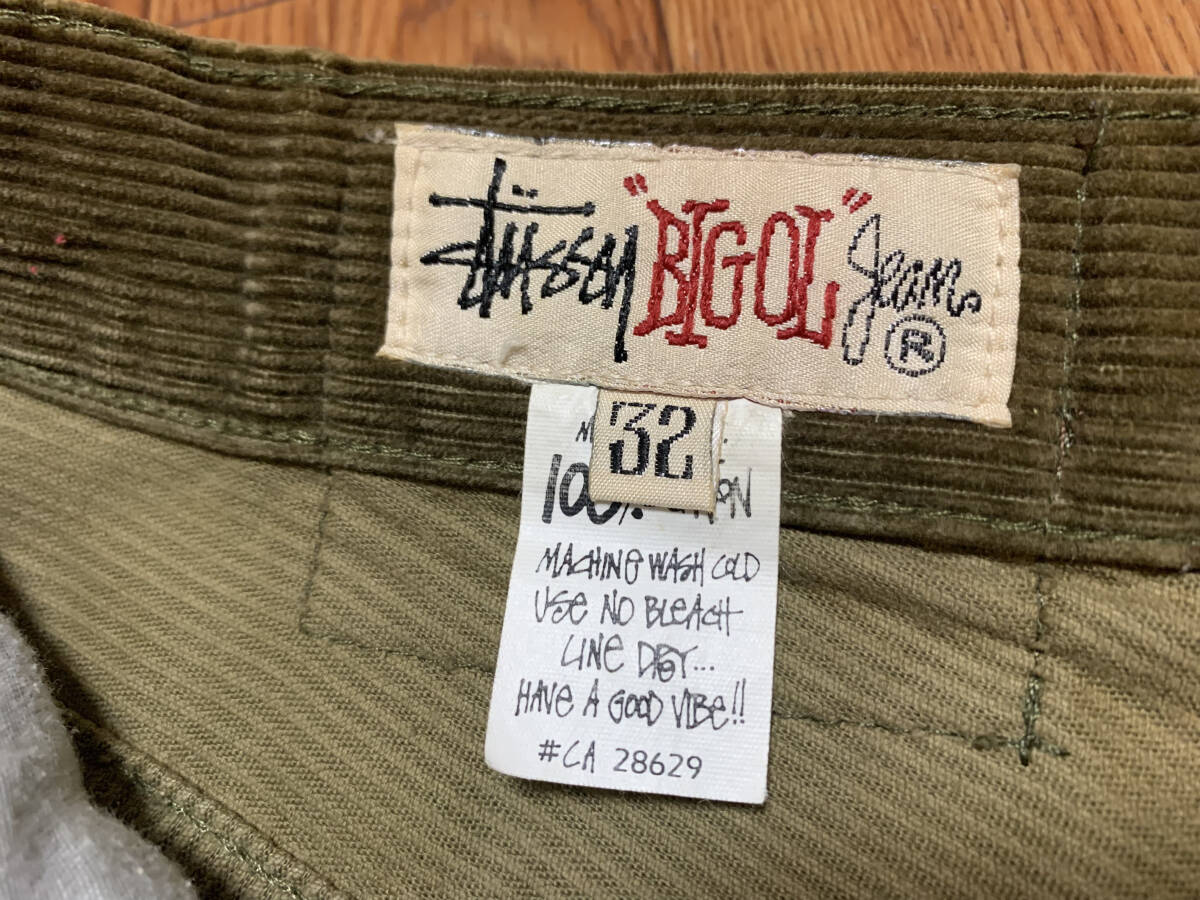 90s USA製 BIG OL オリジナル ビンテージ OLD STUSSY 太畝 コーデュロイ パンツ 32 オリーブ グリーン オールド ステューシー 白タグ