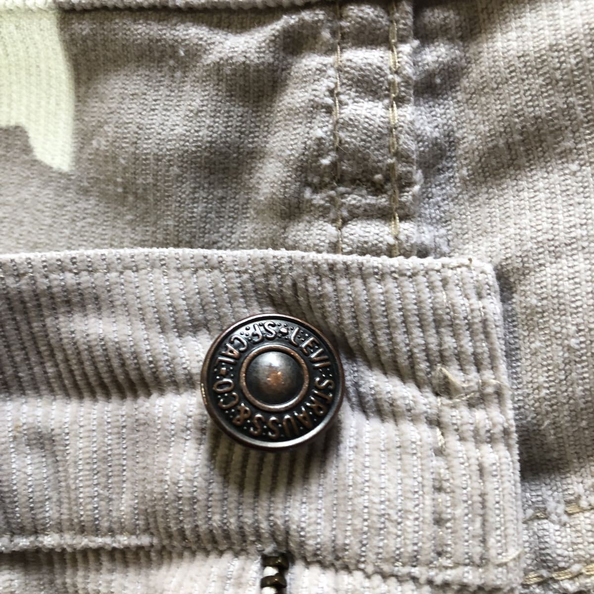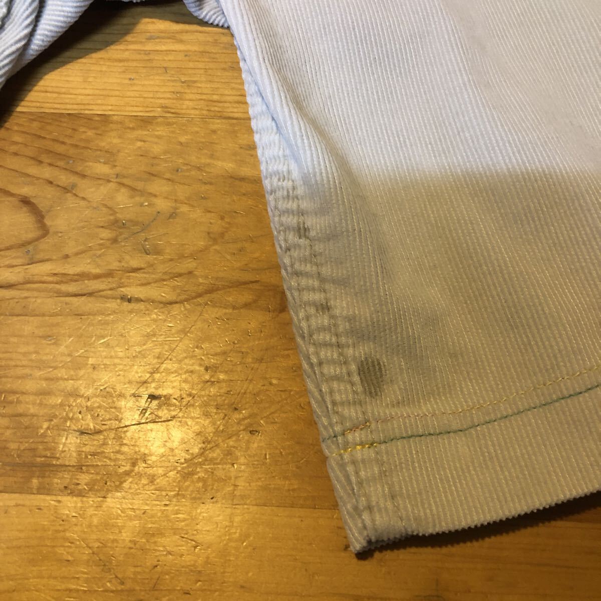 右後ろポケットはステッチが上から縫製してありますのでそこまでしか手が入りません。左裾にシミがあり全体的にも多少の汚れがありますが割と綺麗なコンディションです(私見)