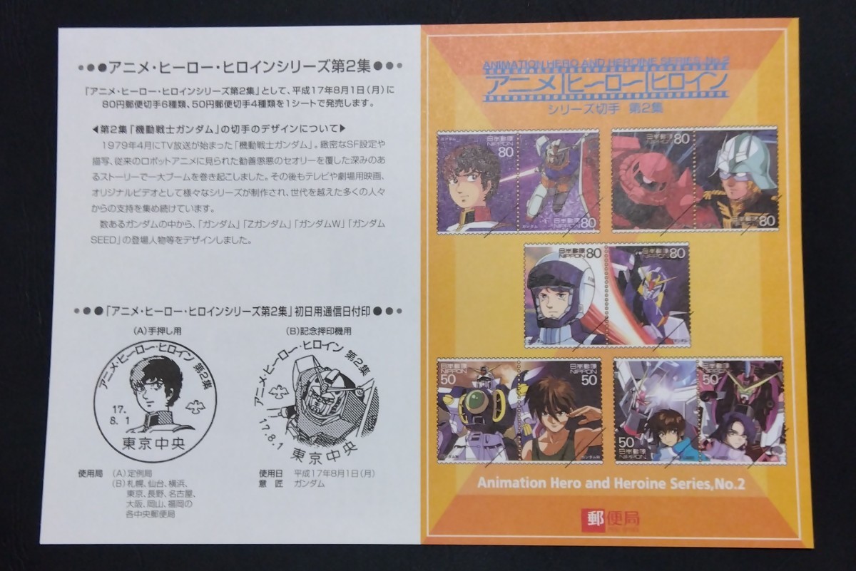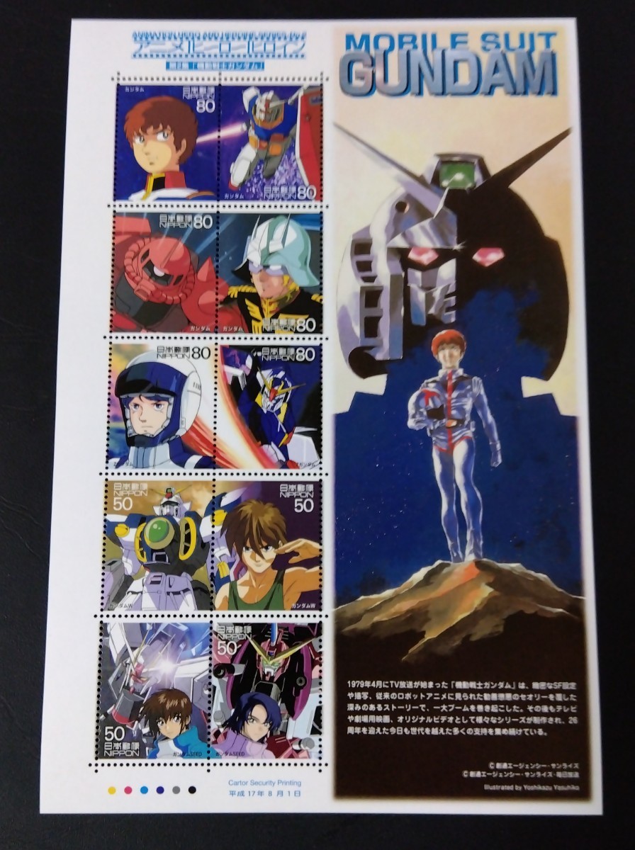 2005年・記念切手-アニメ・ヒーロー・ヒロインシリーズ第2集(機動戦士ガンダム)台紙付・シート