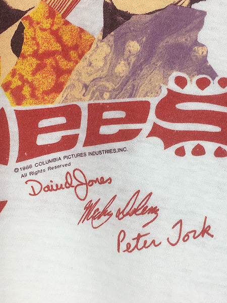 1986年にザ・モンキーズのバンド結成20周年を記念して行われたワールドツアーTシャツ。