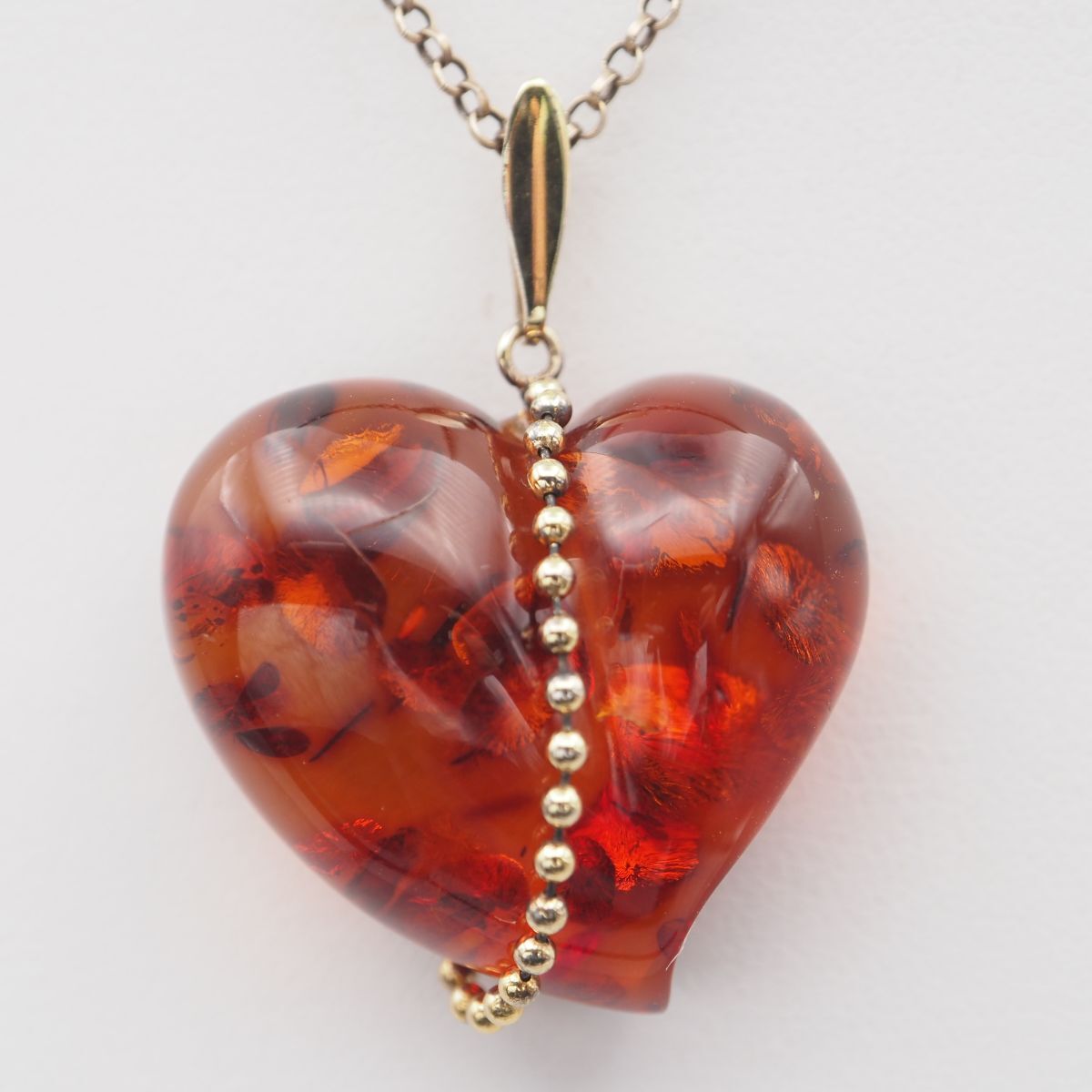B723 琥珀 コハク SV刻印 ペンダント トップ ハート チェーン ゴールド デザイン シルバー チャーム ヘッド ヴィンテージ