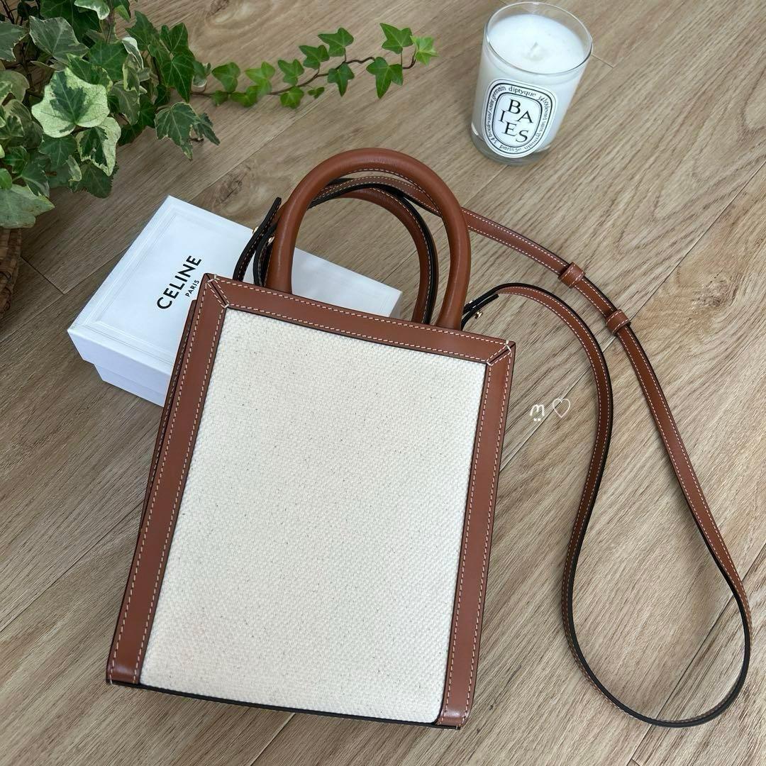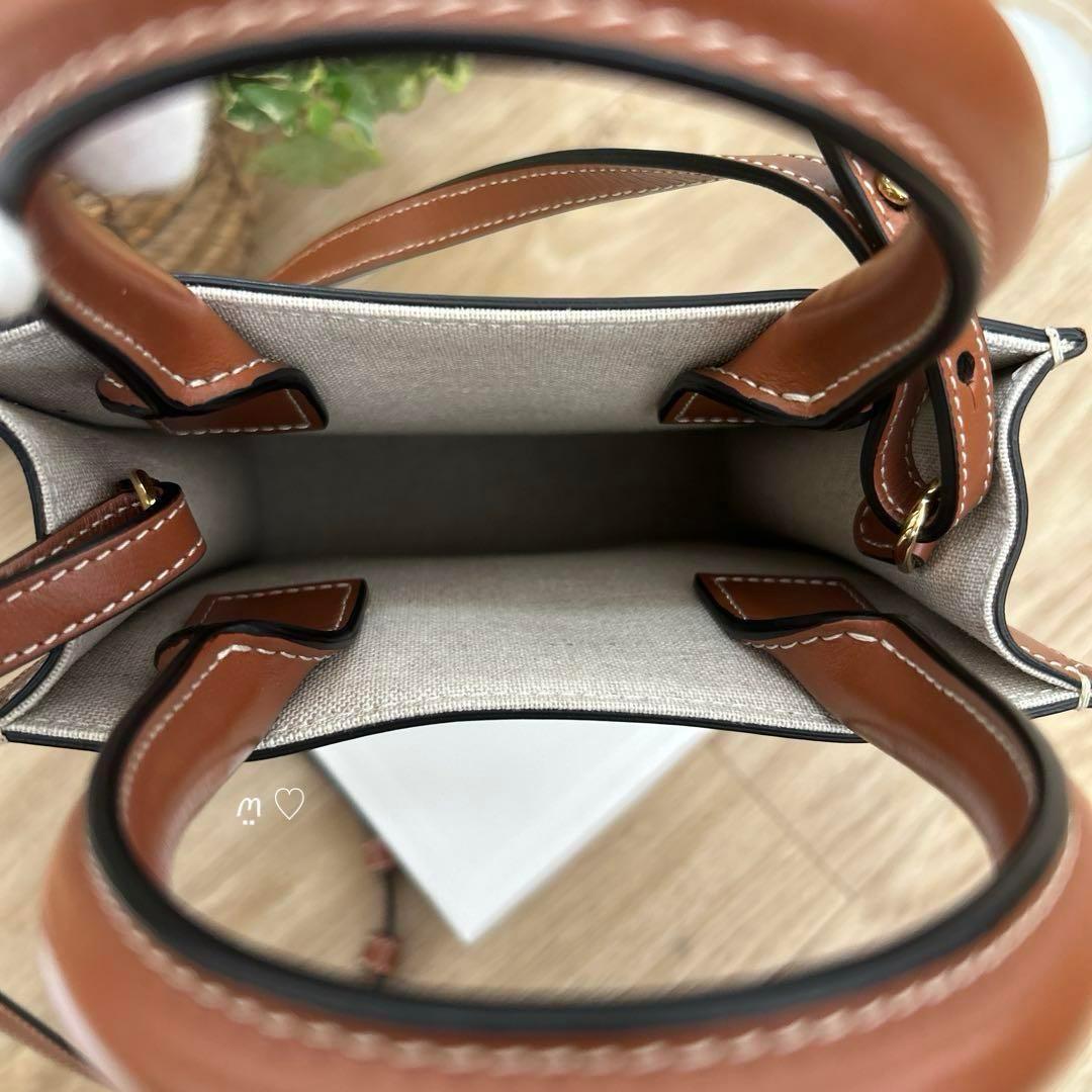 上質なキャンバス素材にブラウンレザーでトリミングを施したシンプルな縦型デザインで、軽量で荷物の出し入れもしやすいお作り。