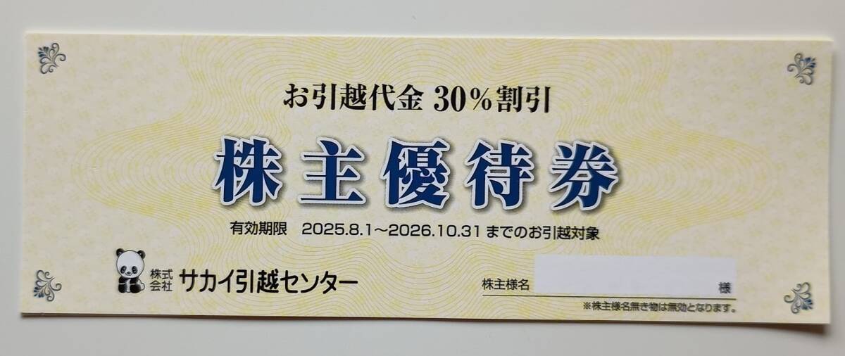 | 最新 サカイ引越センター 株主優待 引越し代金30%割引券 6枚まで可 | |