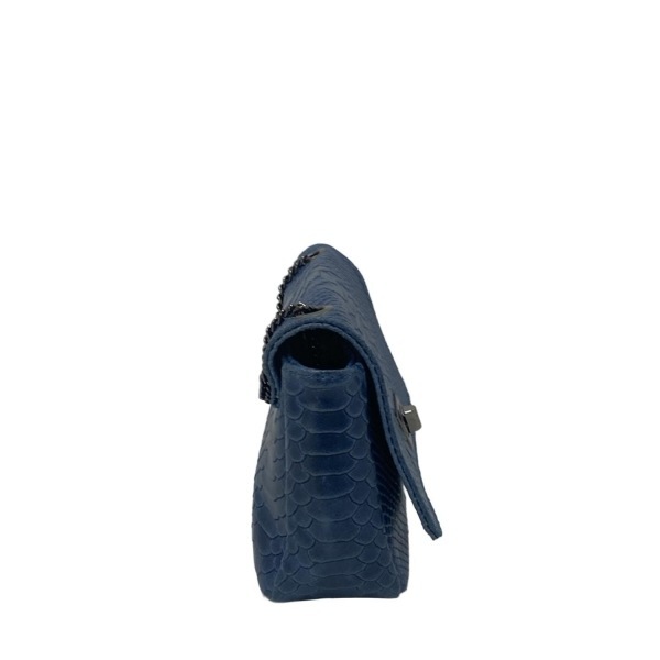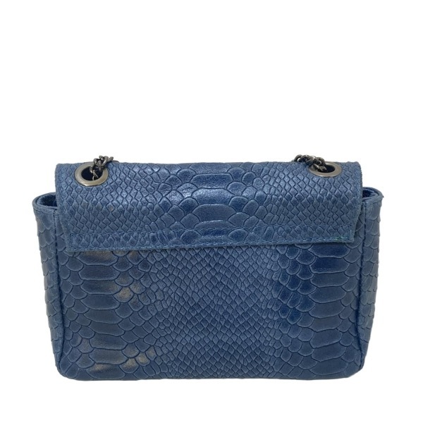 ペレボルサ Borse in Pelle ショルダーバッグ - レザー ブルーグレー 型押し加工/チェーンショルダー バッグ